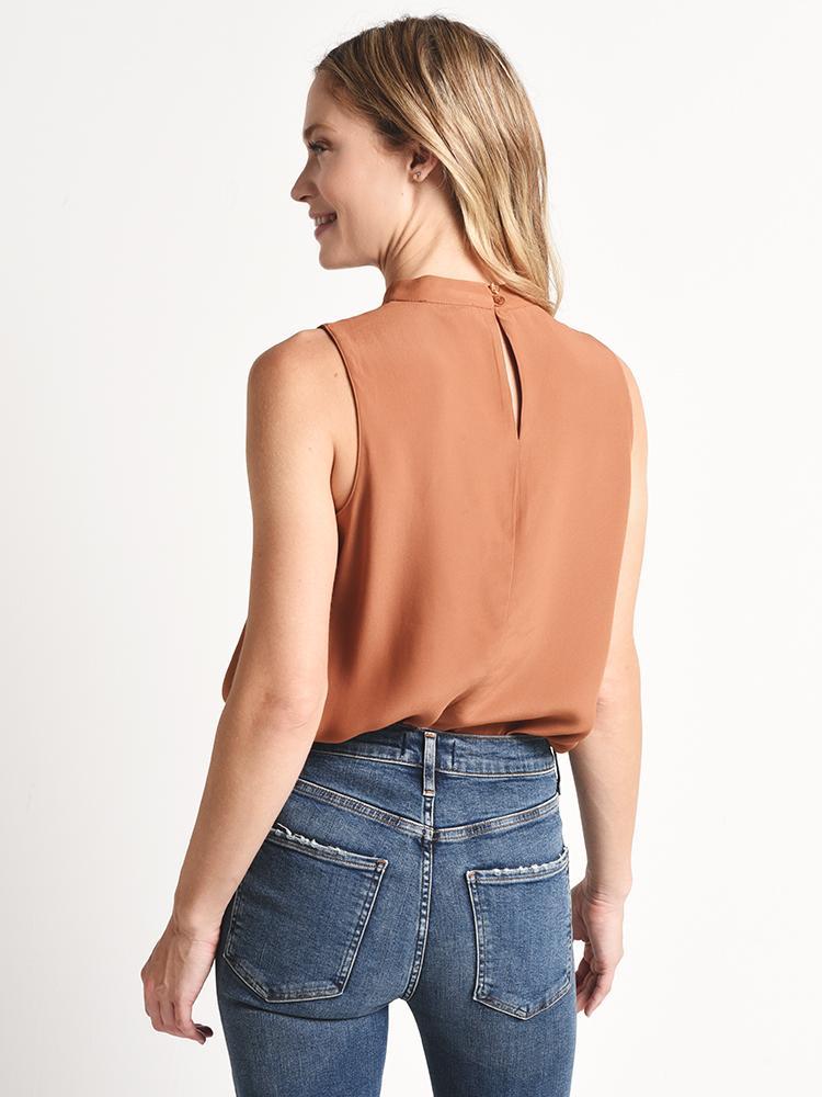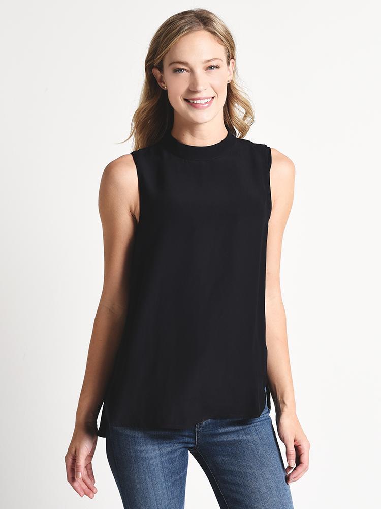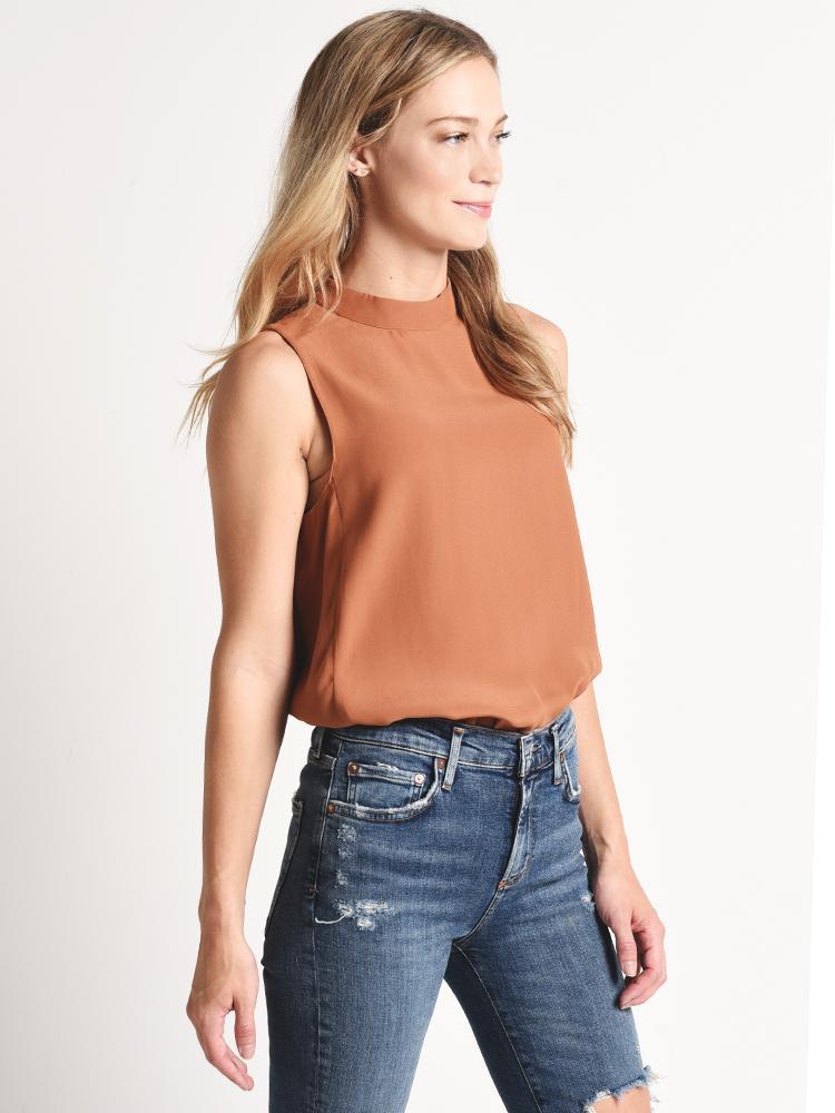 The Naked Zebra Mock Neck Curved Hem Top is a perfect transition into fall.