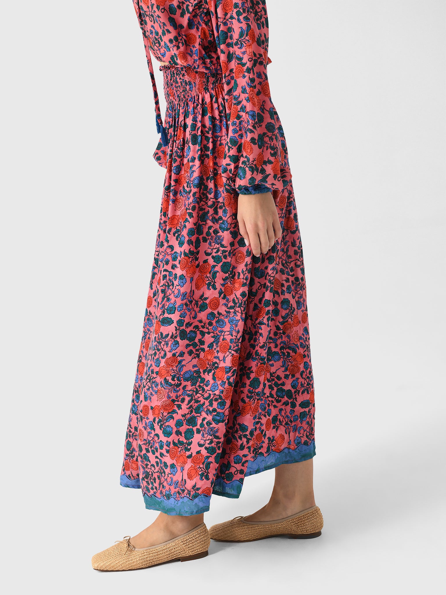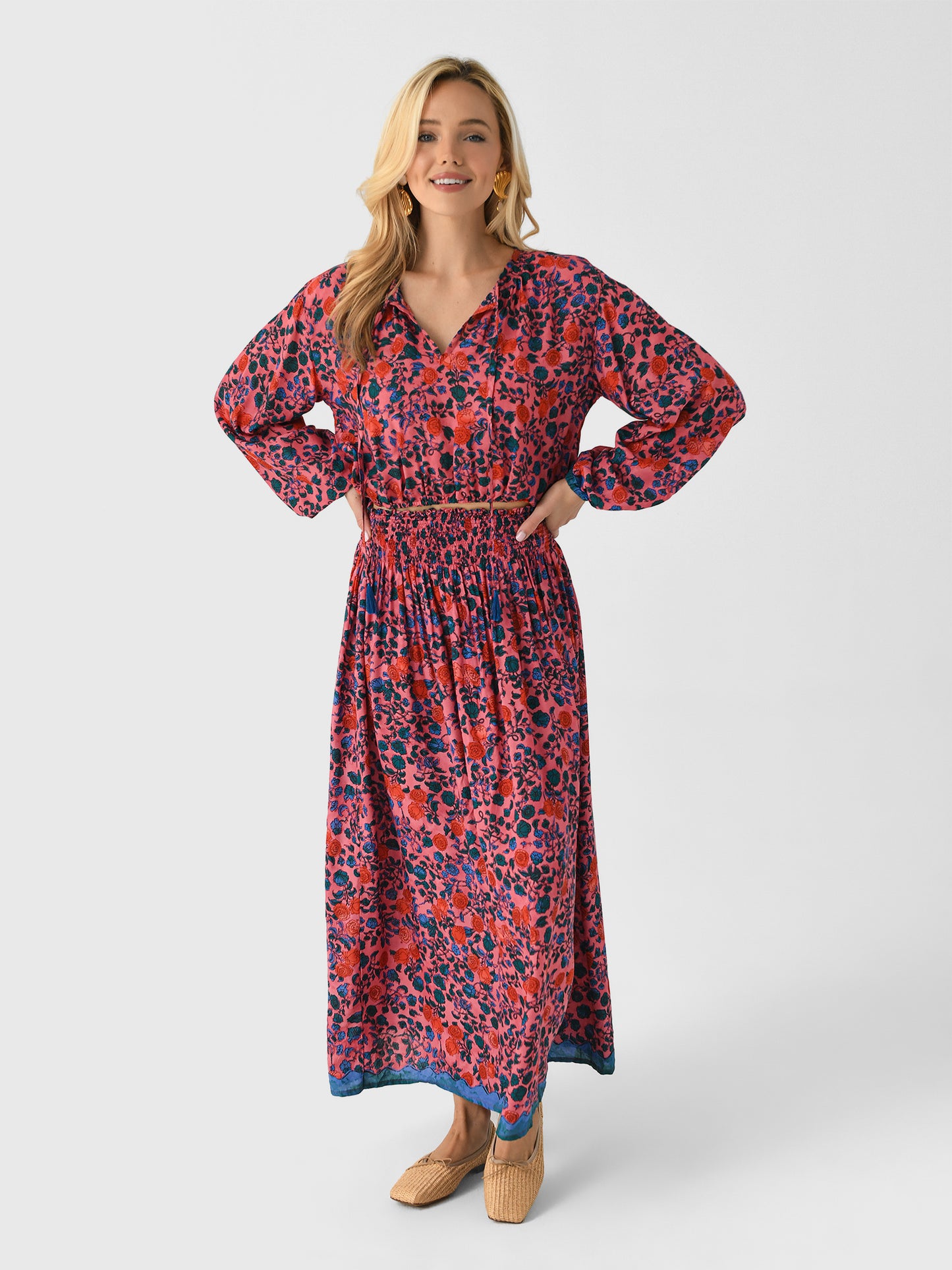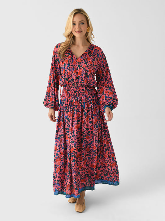A long and flowy maxi skirt made from soft rayon with a wide smocked waistband.