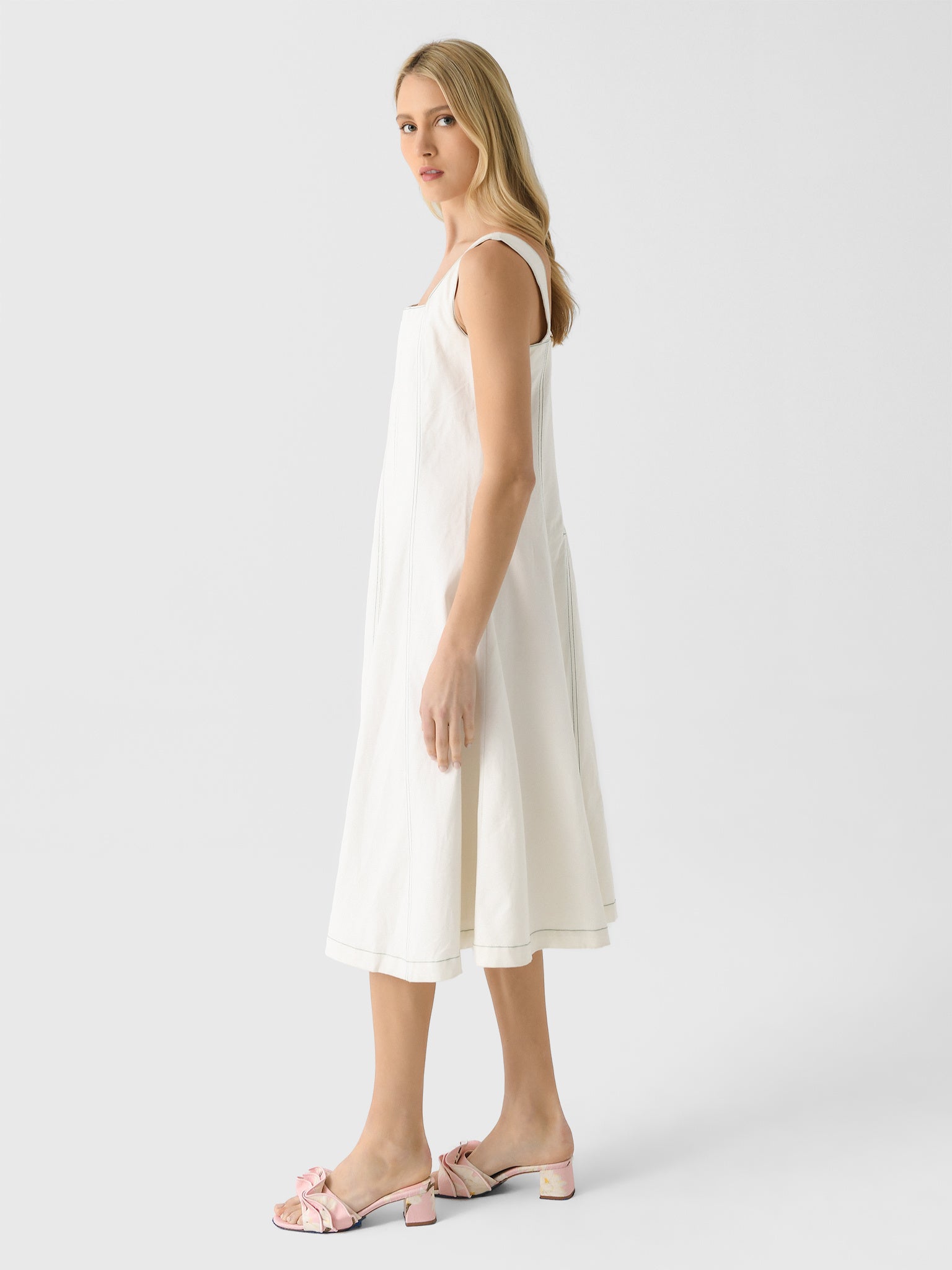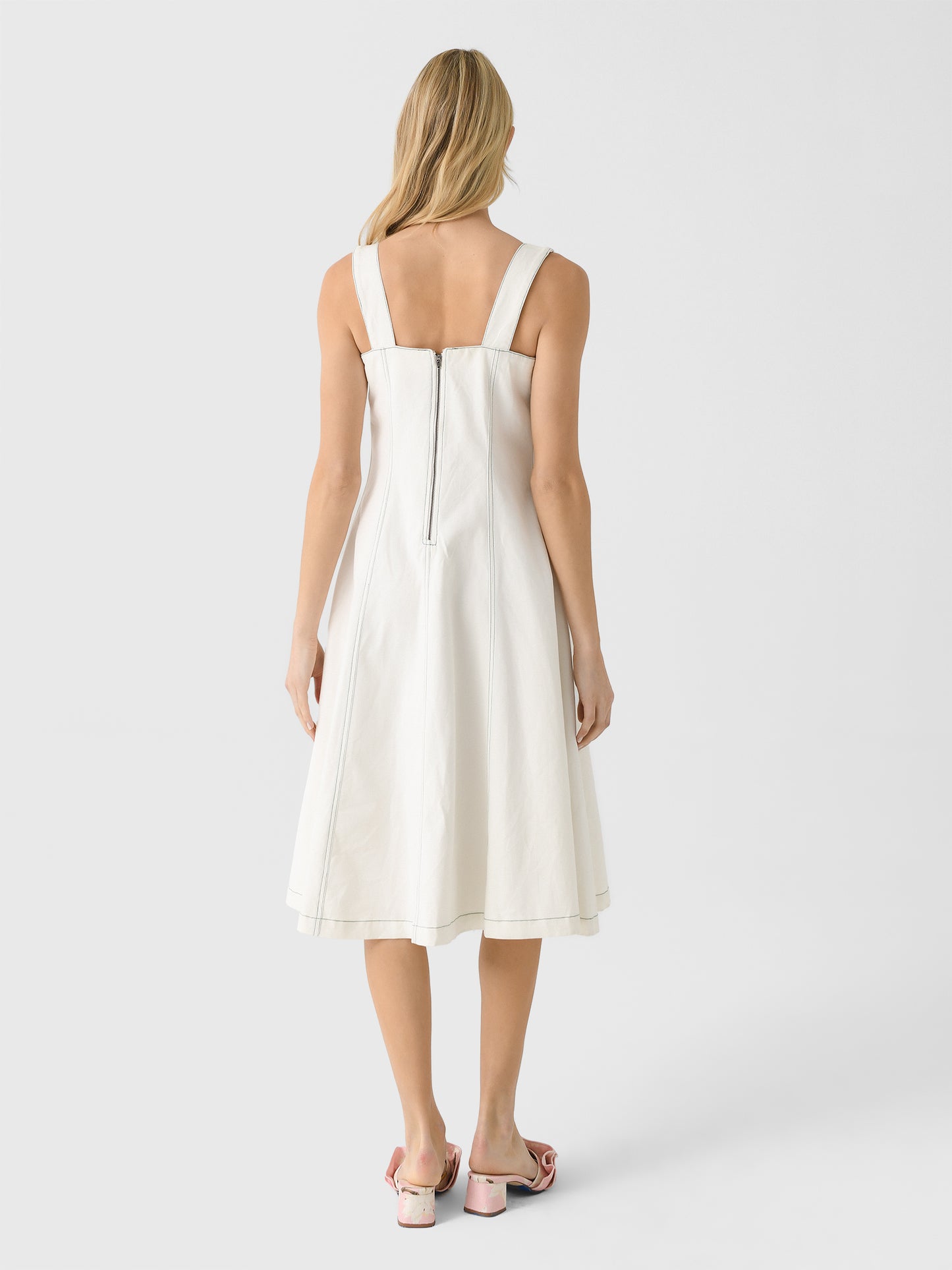 This mid-length dress features a flattering square-neck design made from cotton denim with contrast stitching throughout.