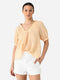 Gingham-printed top with a v-neckline and short puff sleeves.