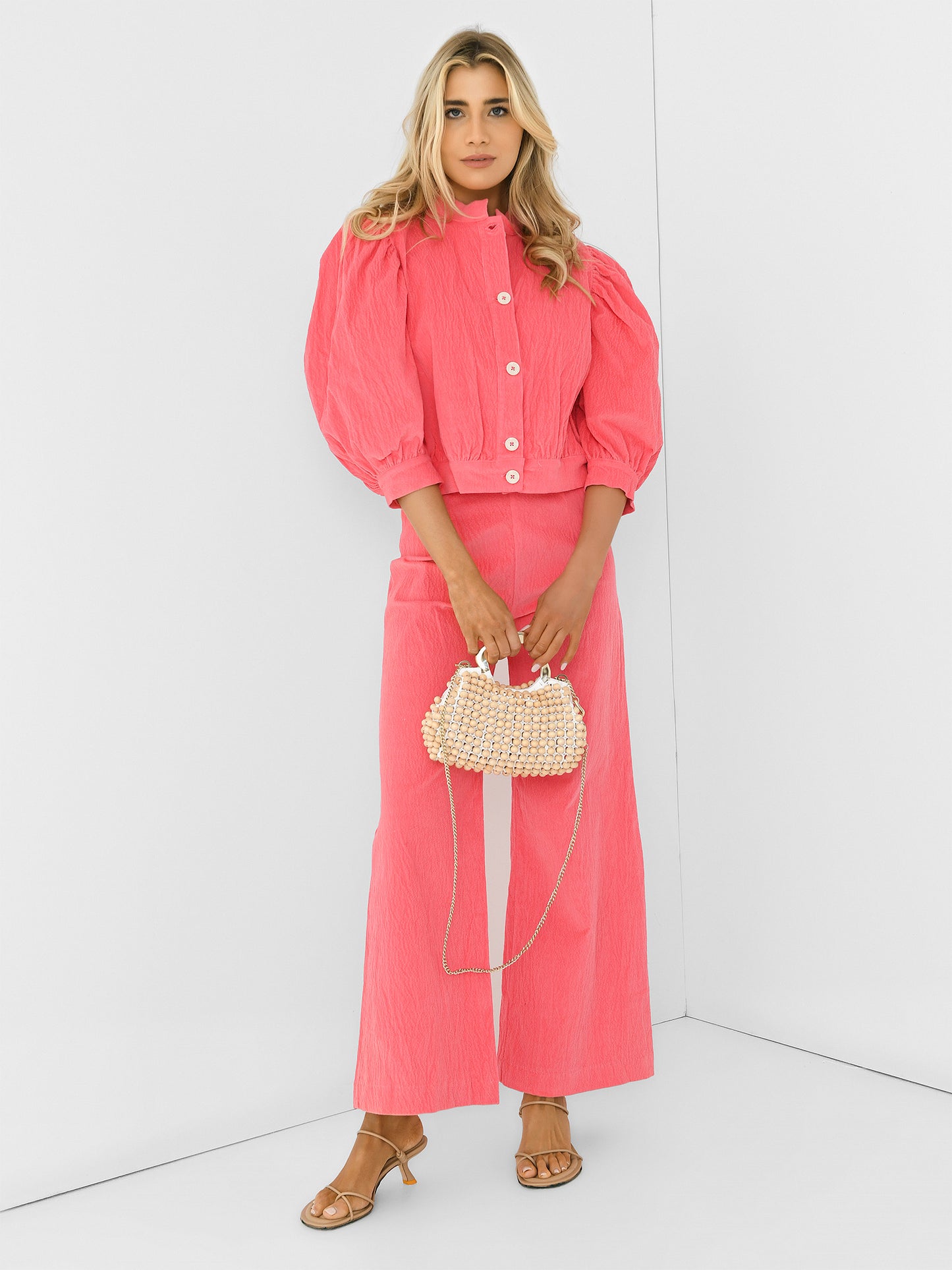 A flattering wide-leg pant with a high-rise fit and ankle-length inseam.