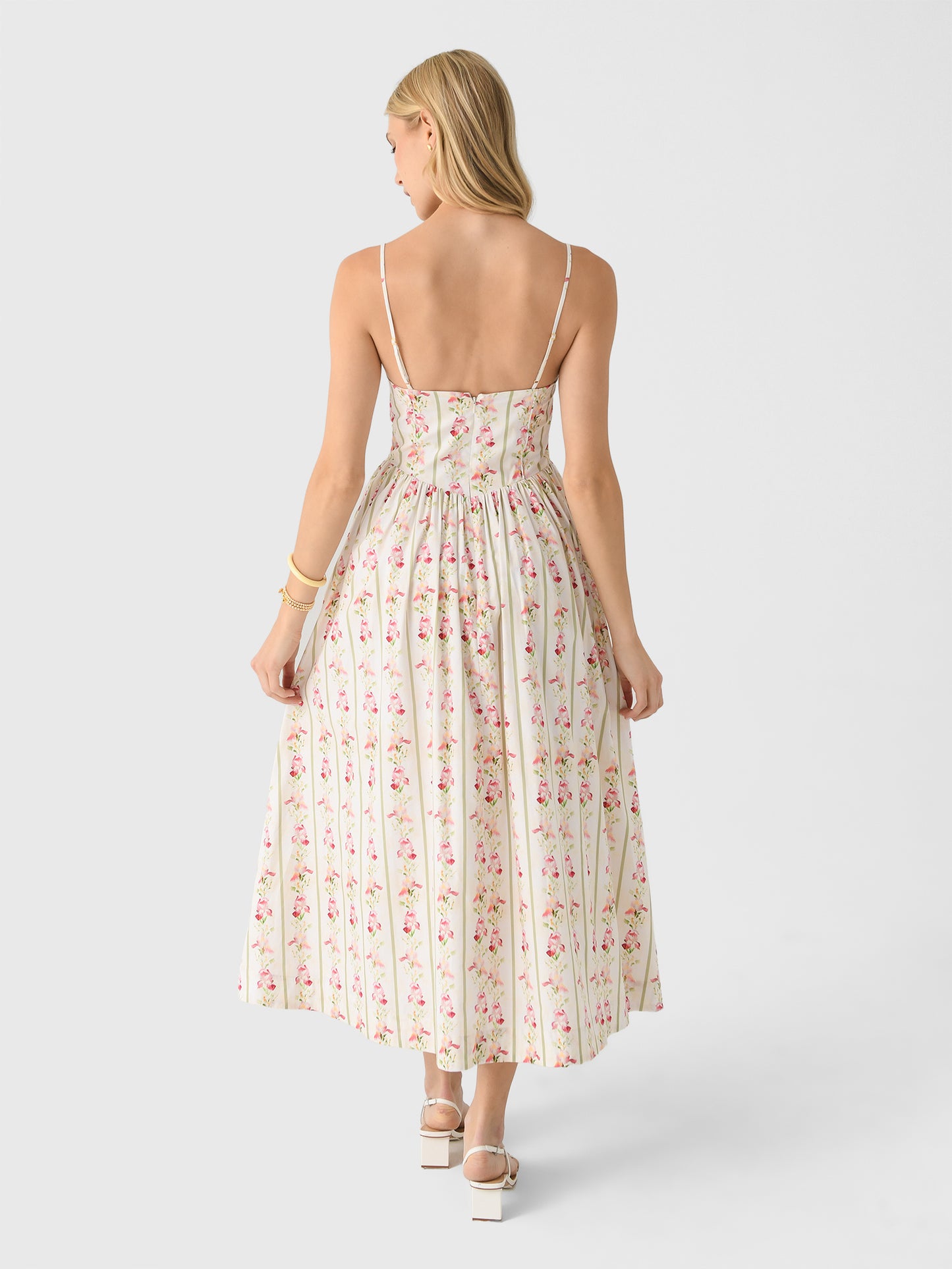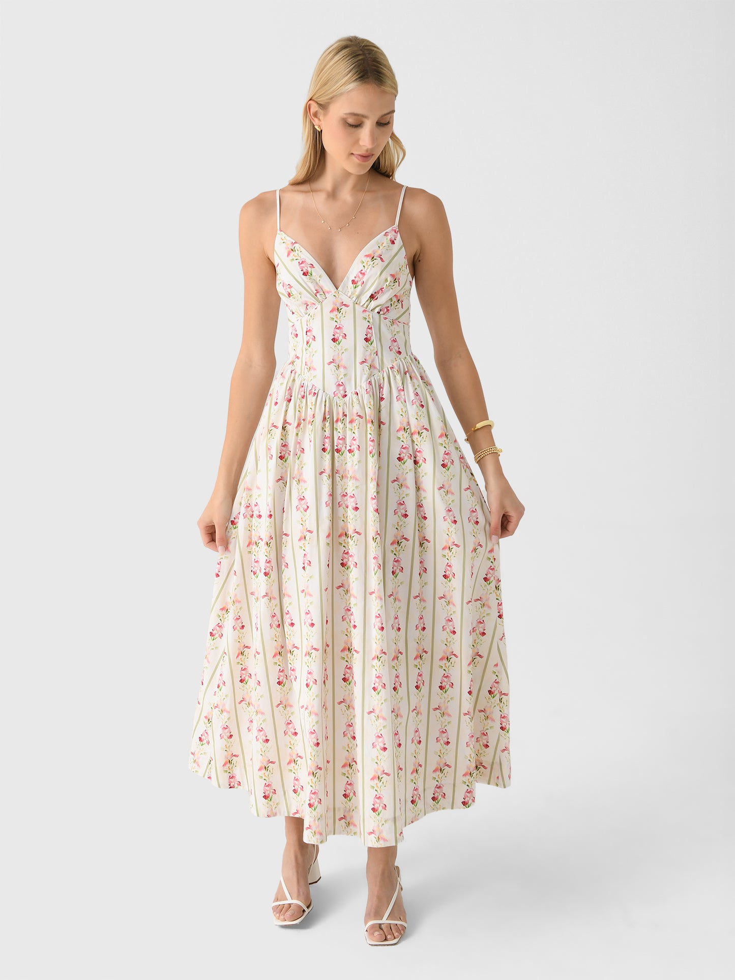 A flattering dress made from floral-printed cotton with a corset-style princess waist and a full flowy skirt.
