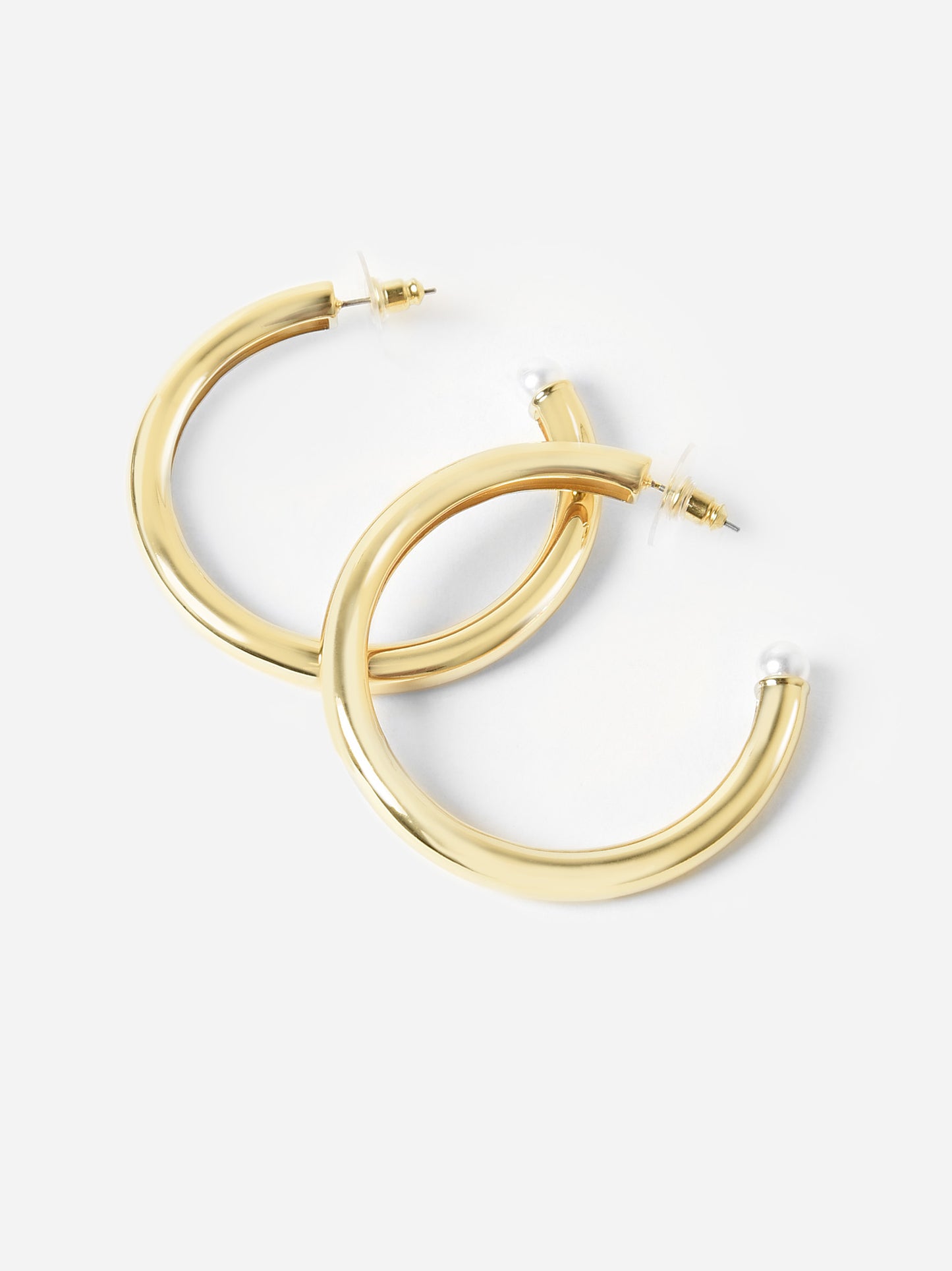 Chunky gold-plated hoop earrings with a faux pearl detail.