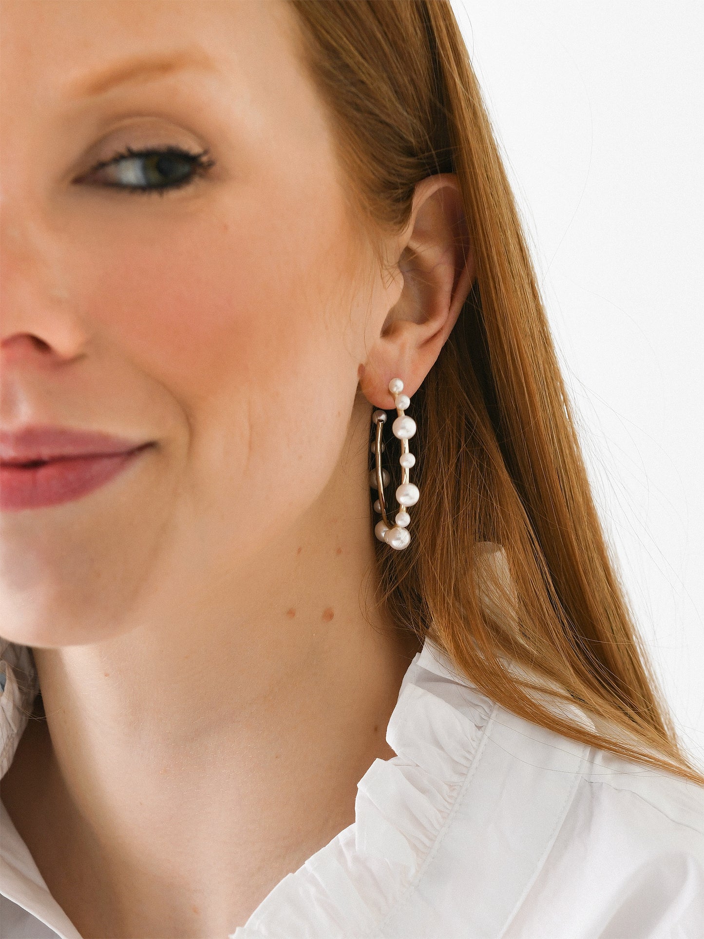 Nicola Bathie Women's Petite Pearl Hoop Earrings