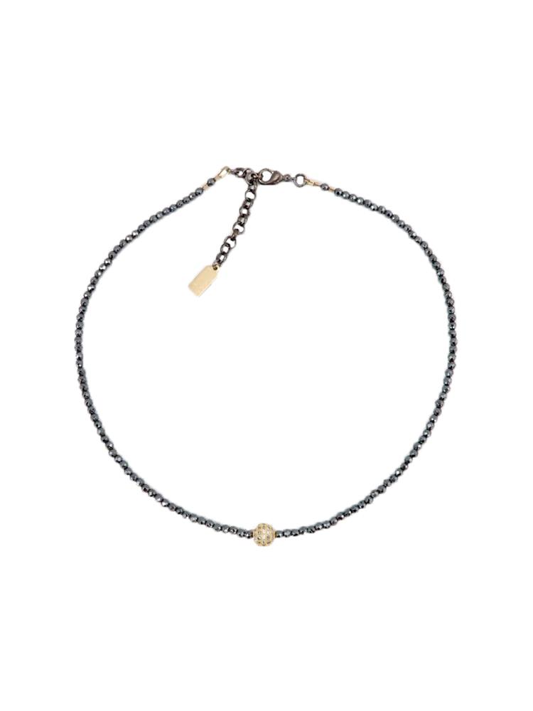 - OTHER MATERIALS: gold- or gunmetal-plated CZ pave ball; clasp closure