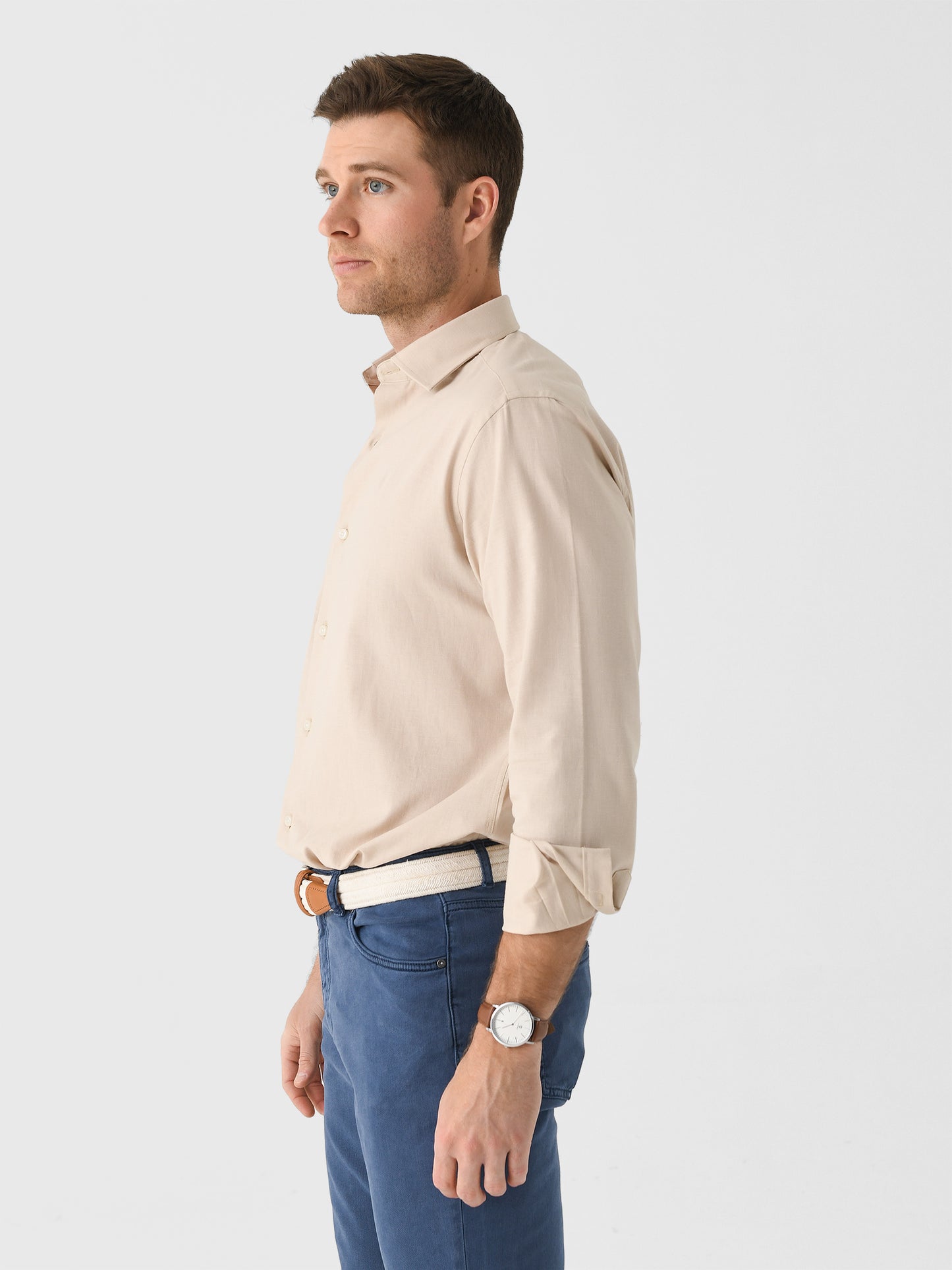 This timeless button-down shirt is made from an airy cotton-linen blend and offers an effortlessly polished look.