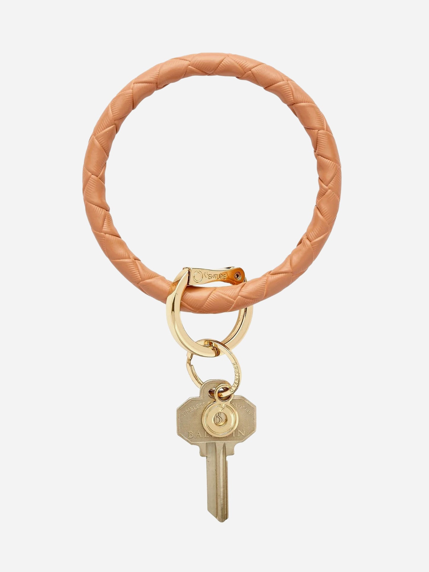 A durable bracelet key ring featuring a 3D braided leather texture.