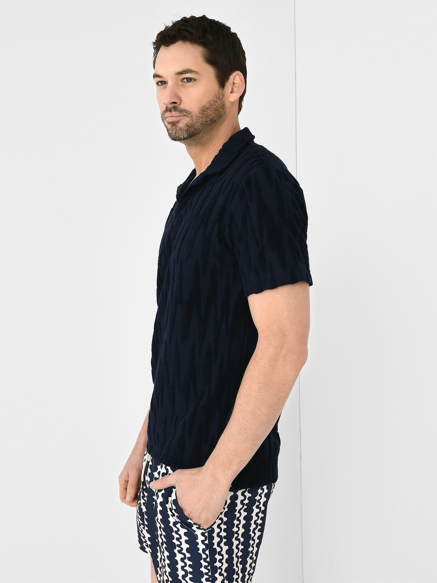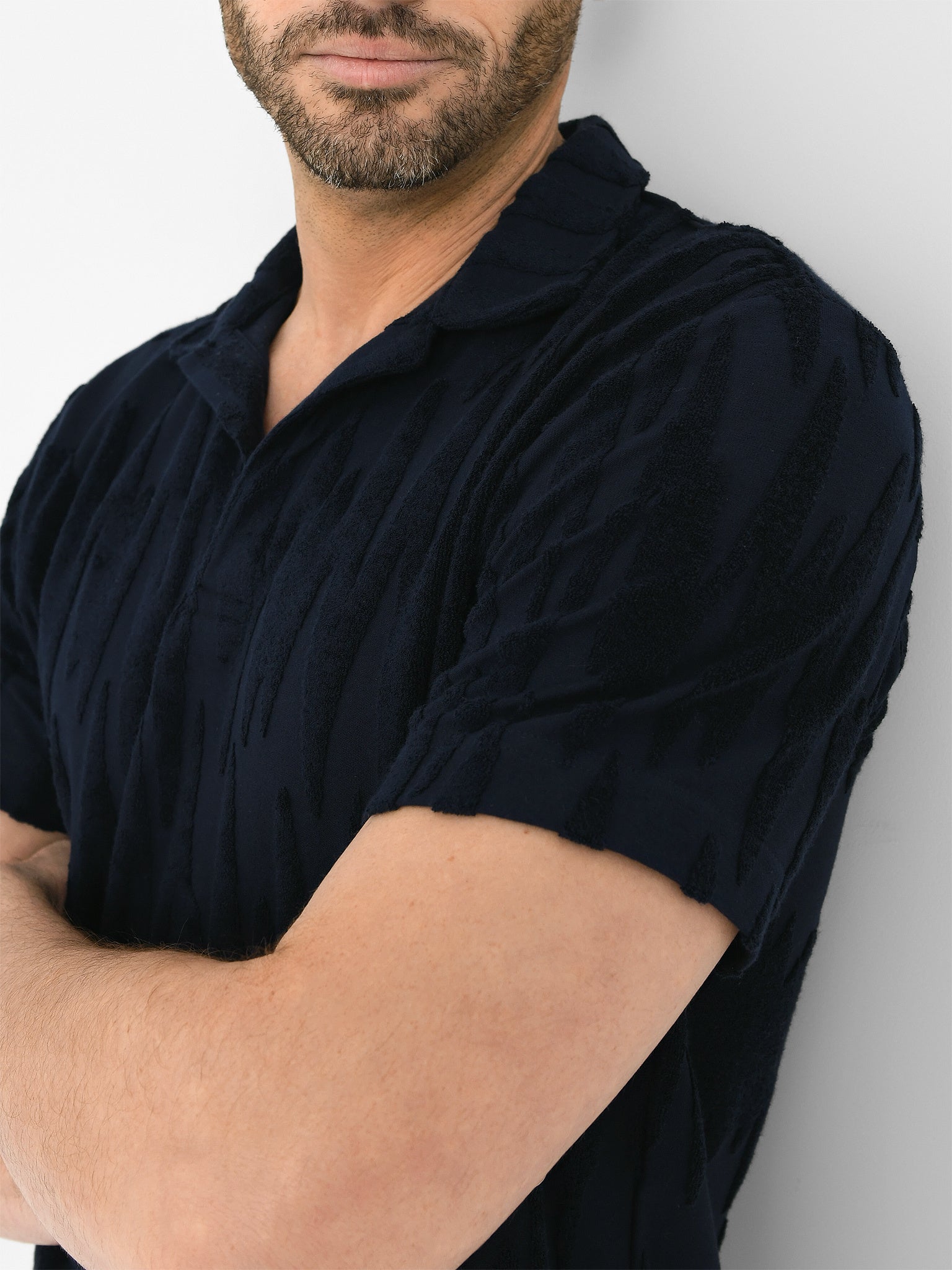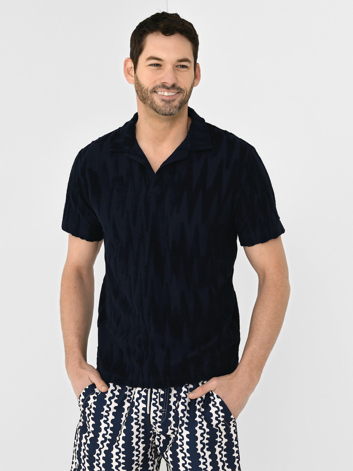 A mid-weight resort-style polo shirt with a jacquard knit design.