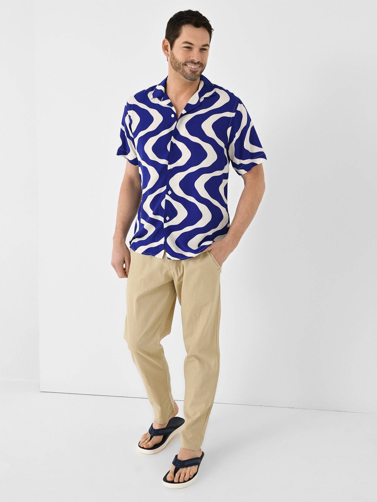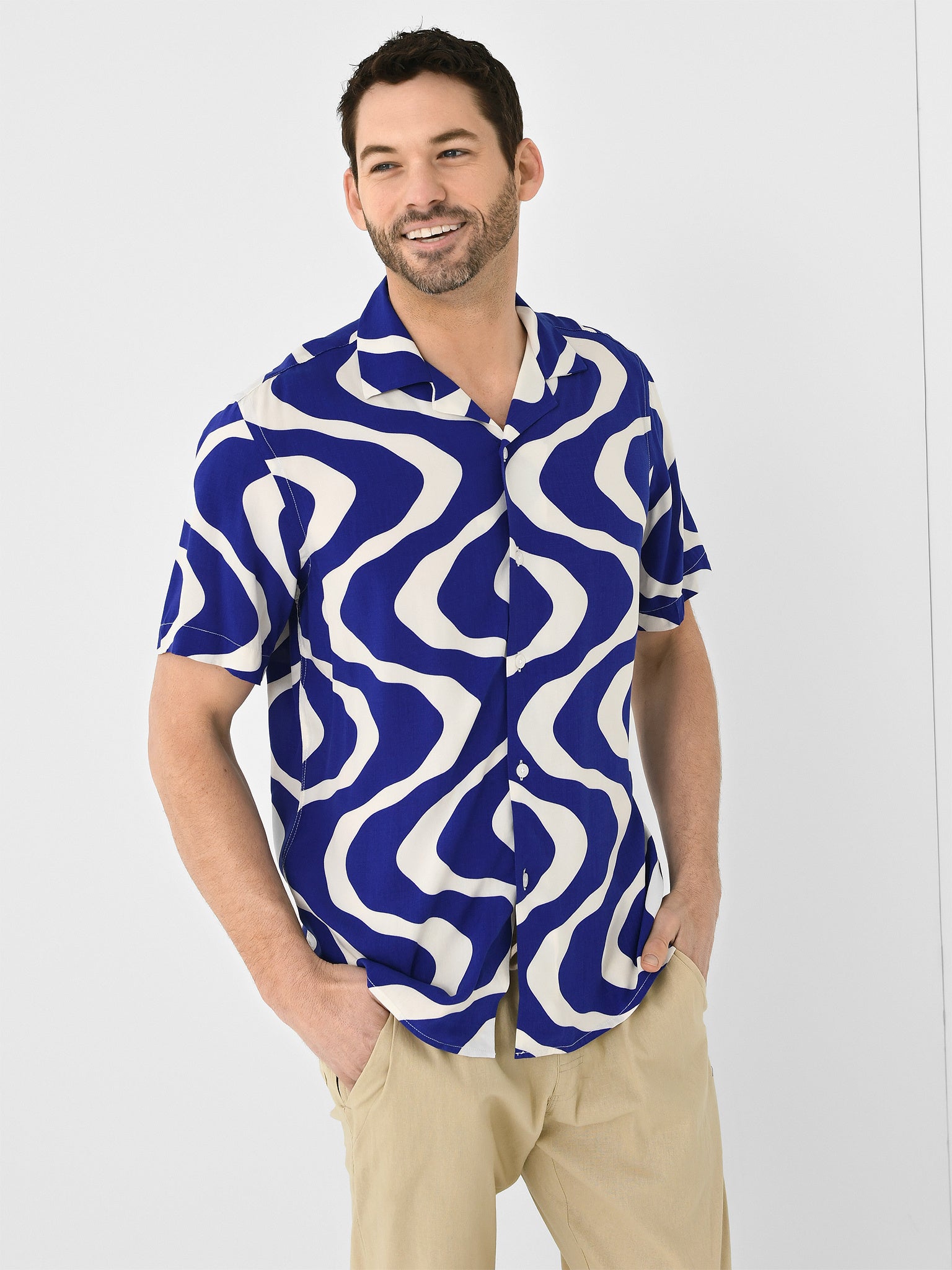 A lightweight and breathable shirt made from silky viscose featuring a custom ripple print.