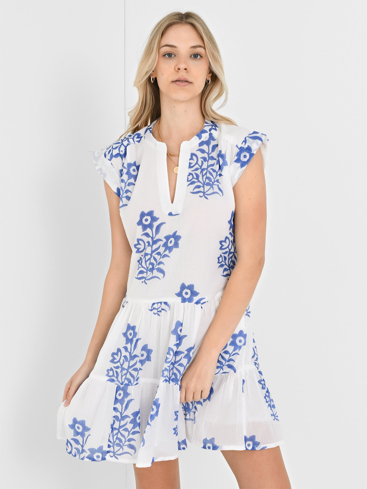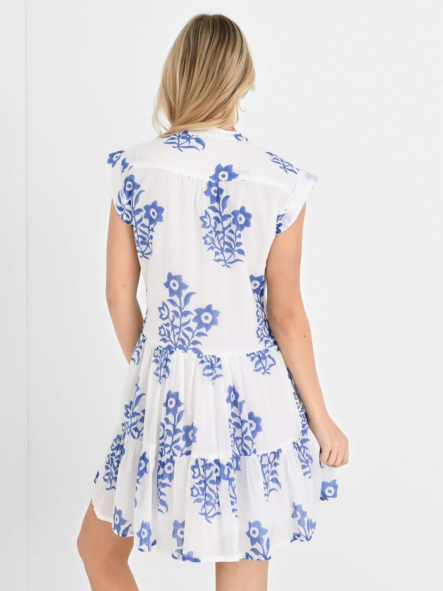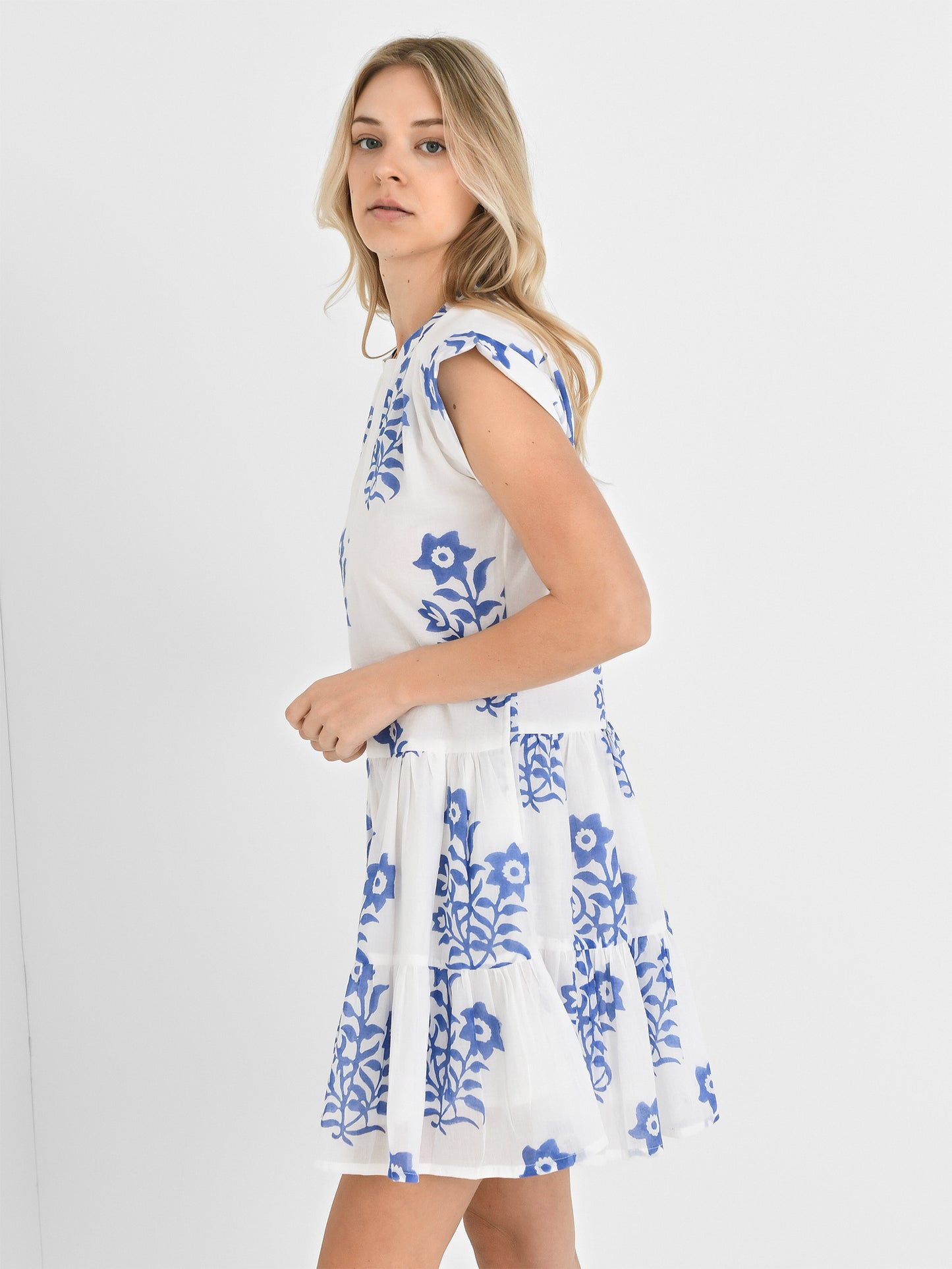 A casual mini dress made from lightweight fabric with roll sleeves and a custom print.