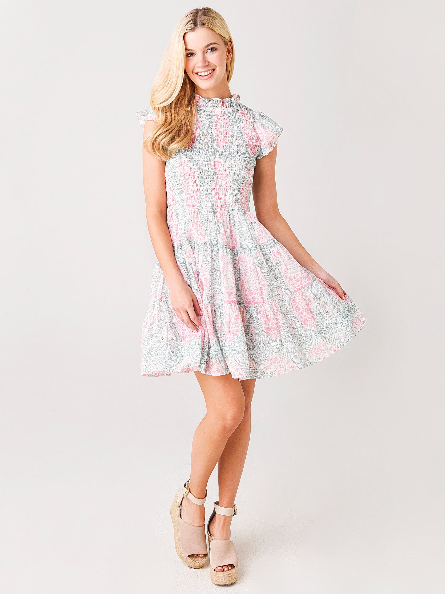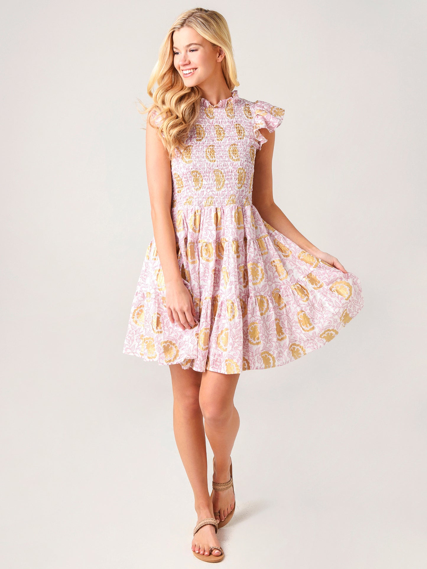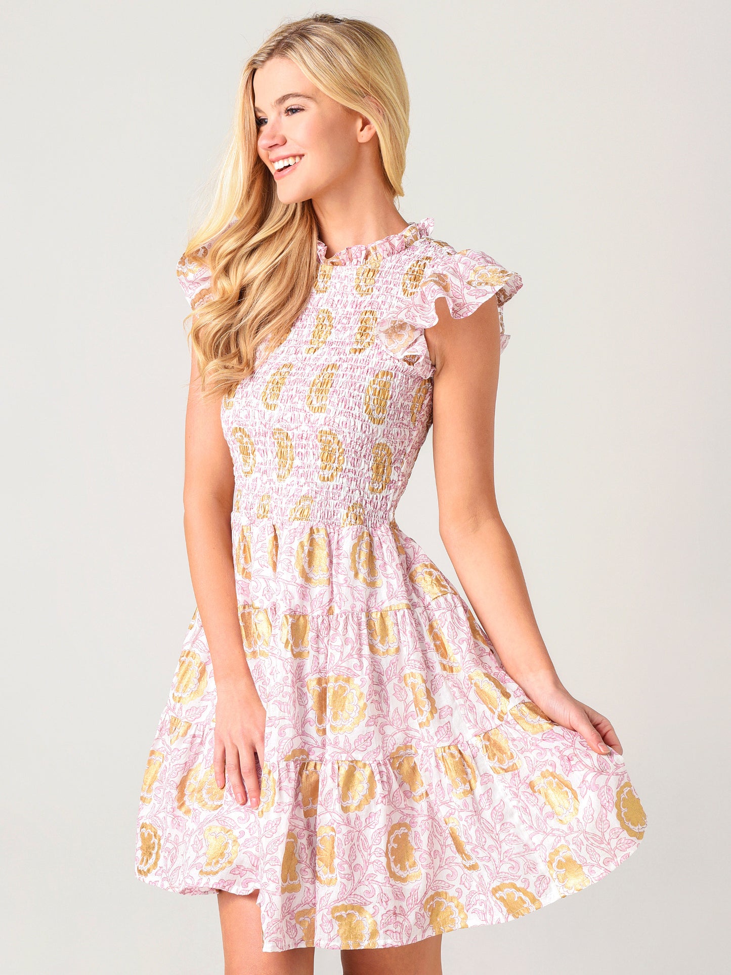 Feeling a bit flirty? The Oliphant Women's Smocked Flirty Short Dress has you covered with a fabulous silhouette and metallic block print to enhance your flirtatious mood.