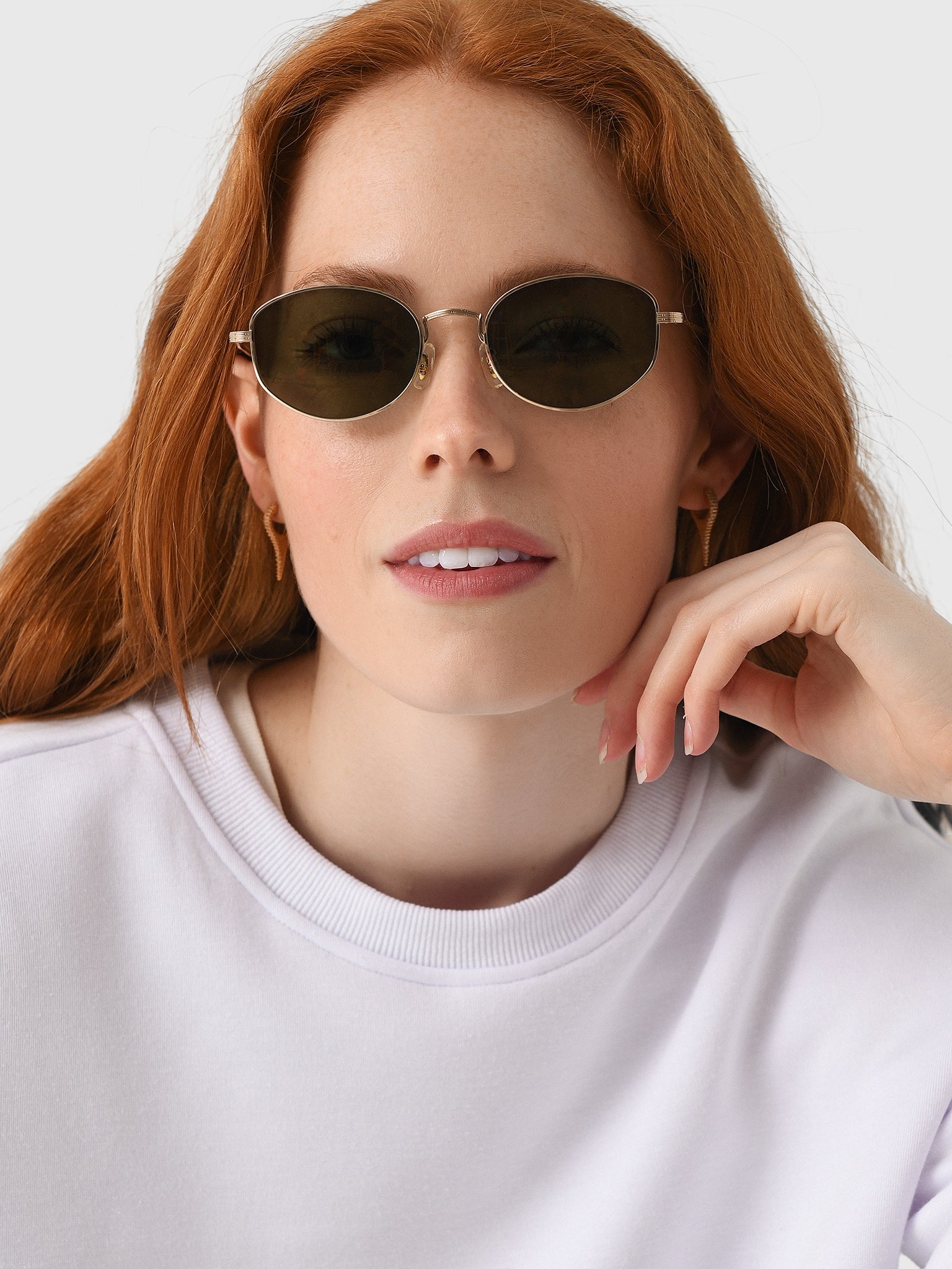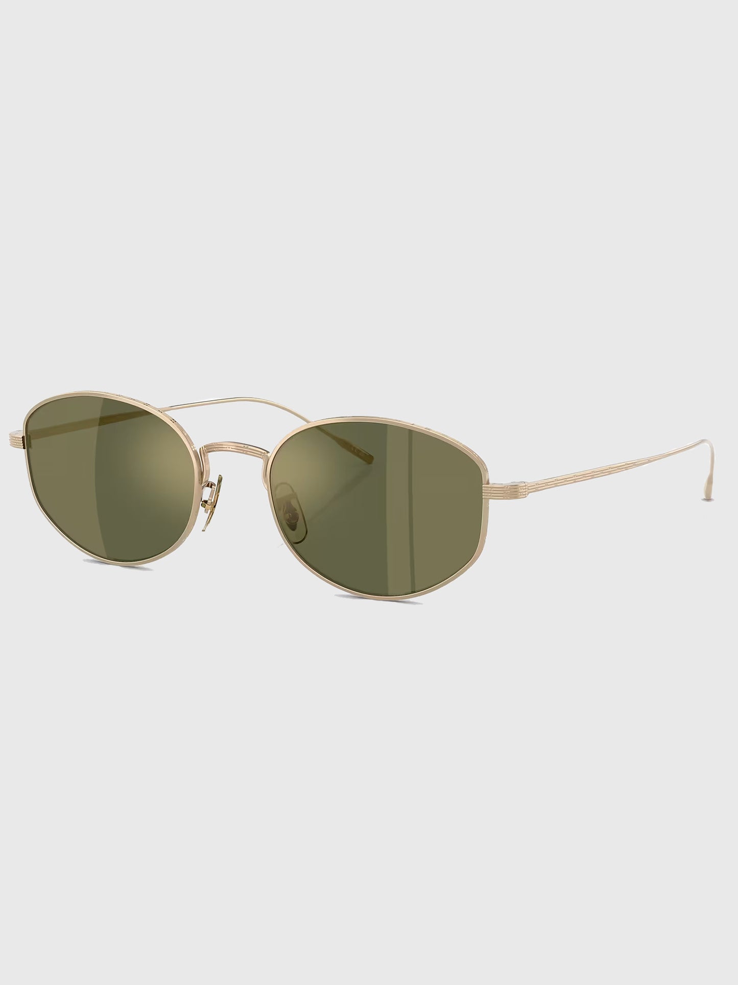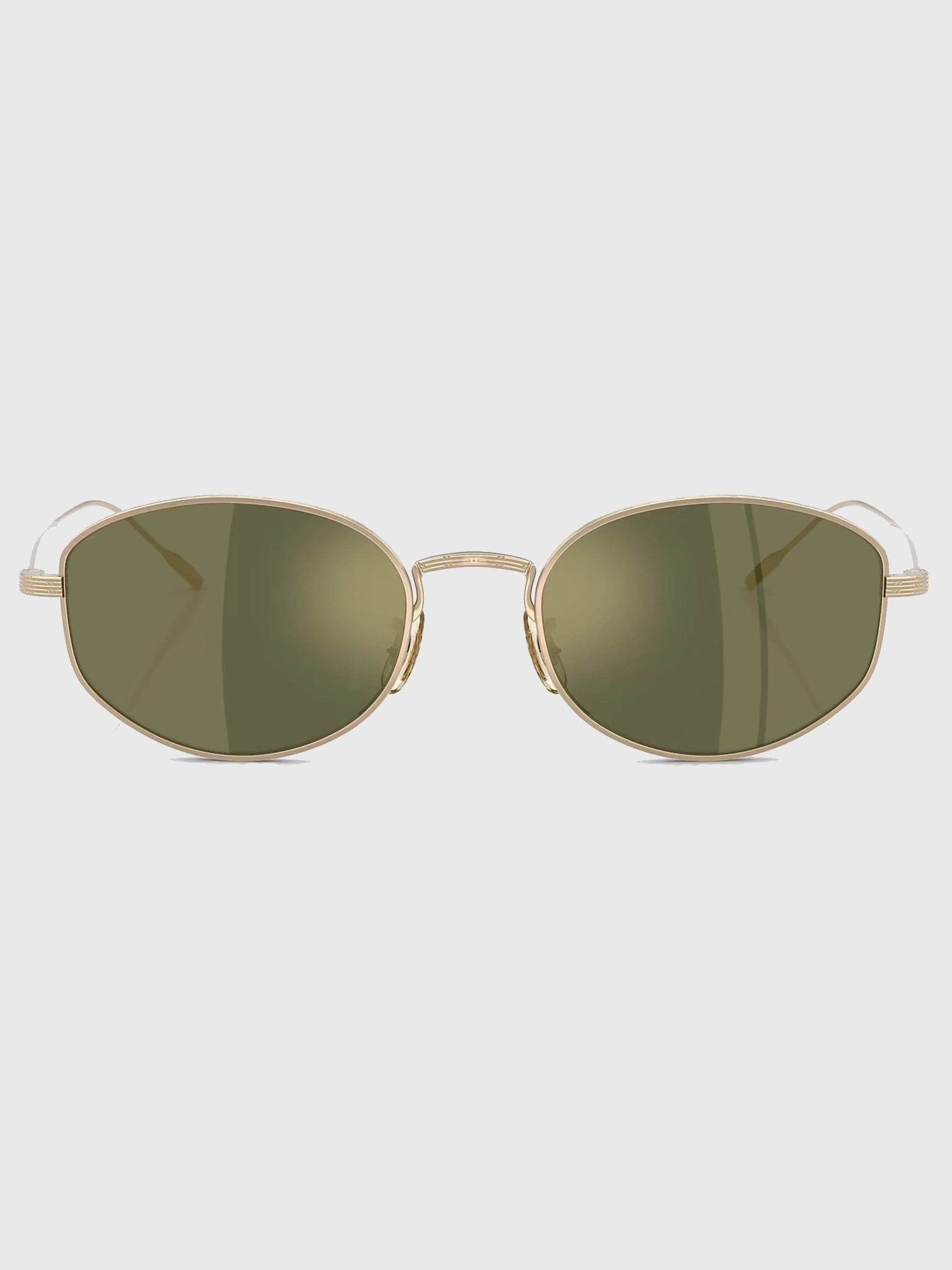 A pair of lightweight titanium sunglasses with a 90s-inspired oval lens shape.