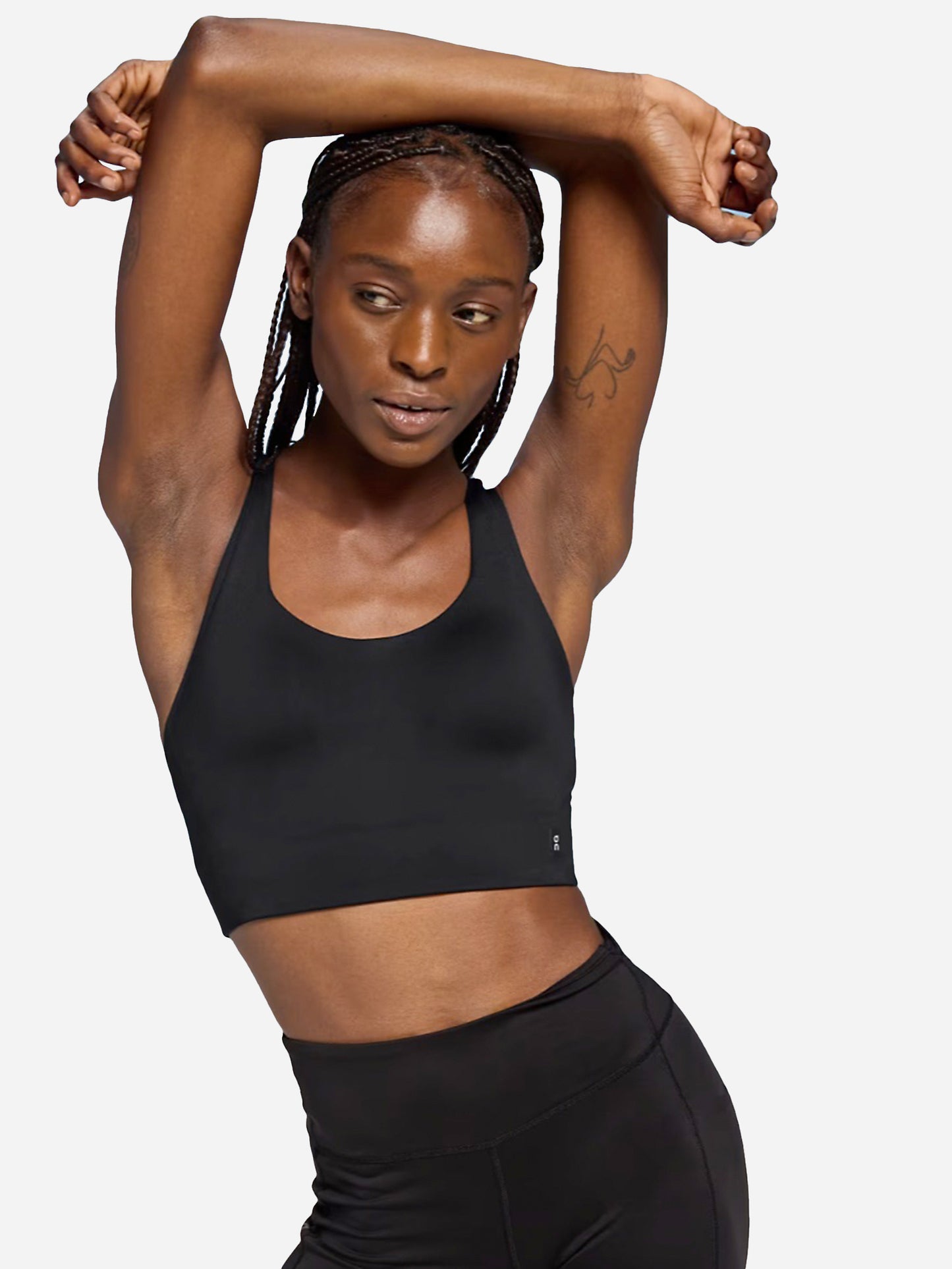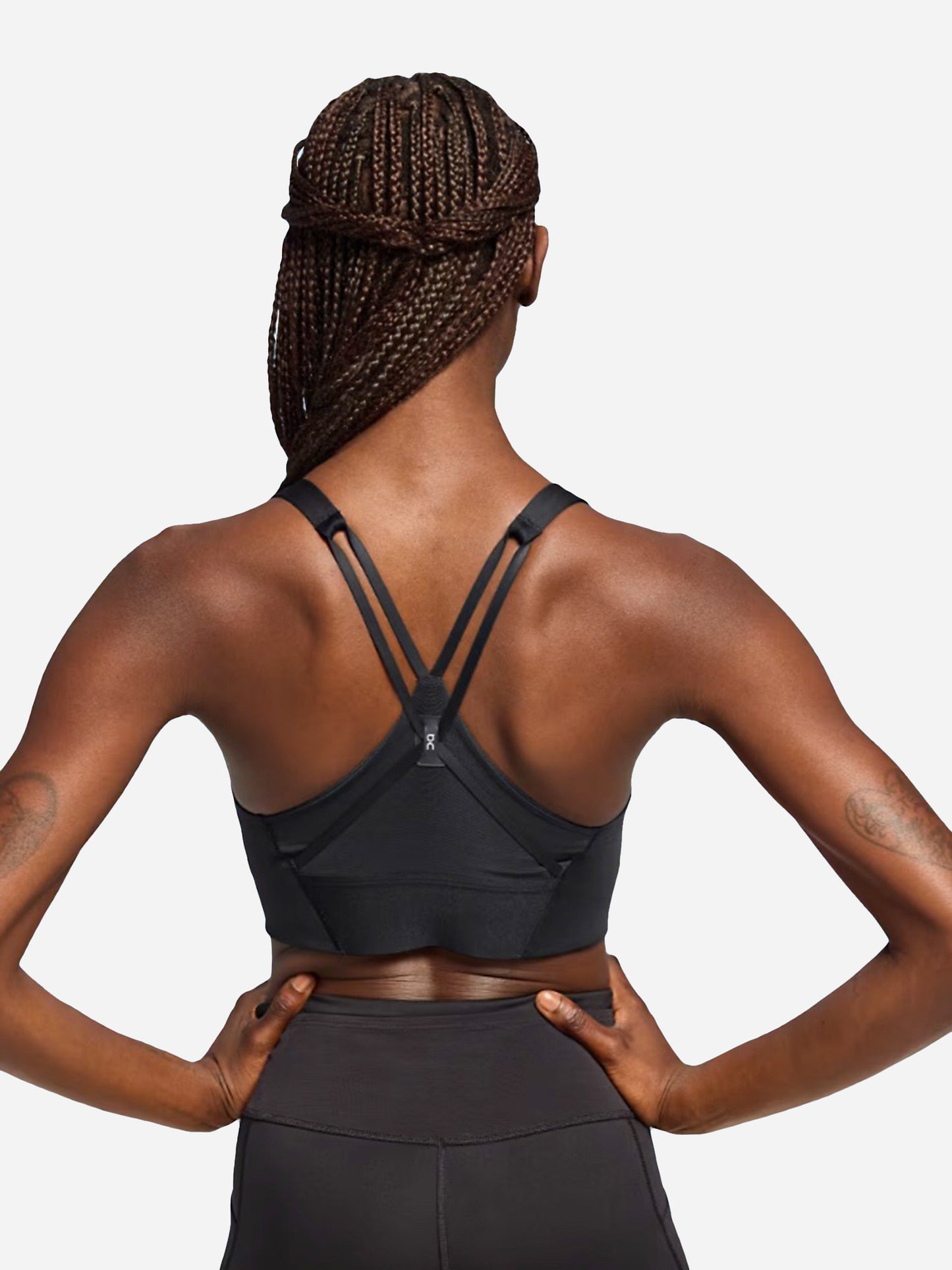 A strappy longline sports bra with padding and medium support for low to medium-impact activities.