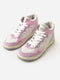 A courtside-inspired sneaker made from eco-friendly materials with a mid-top design and speckled sole.