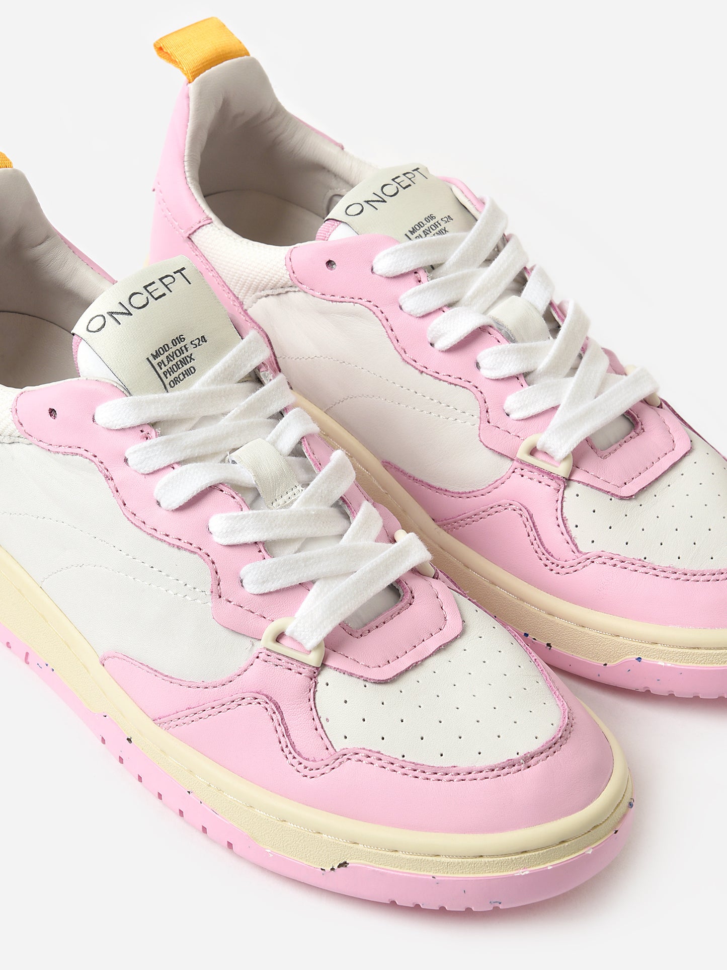 A 90s-inspired retro sneaker made from soft leather in the perfect pink color with a unique speckled sole.