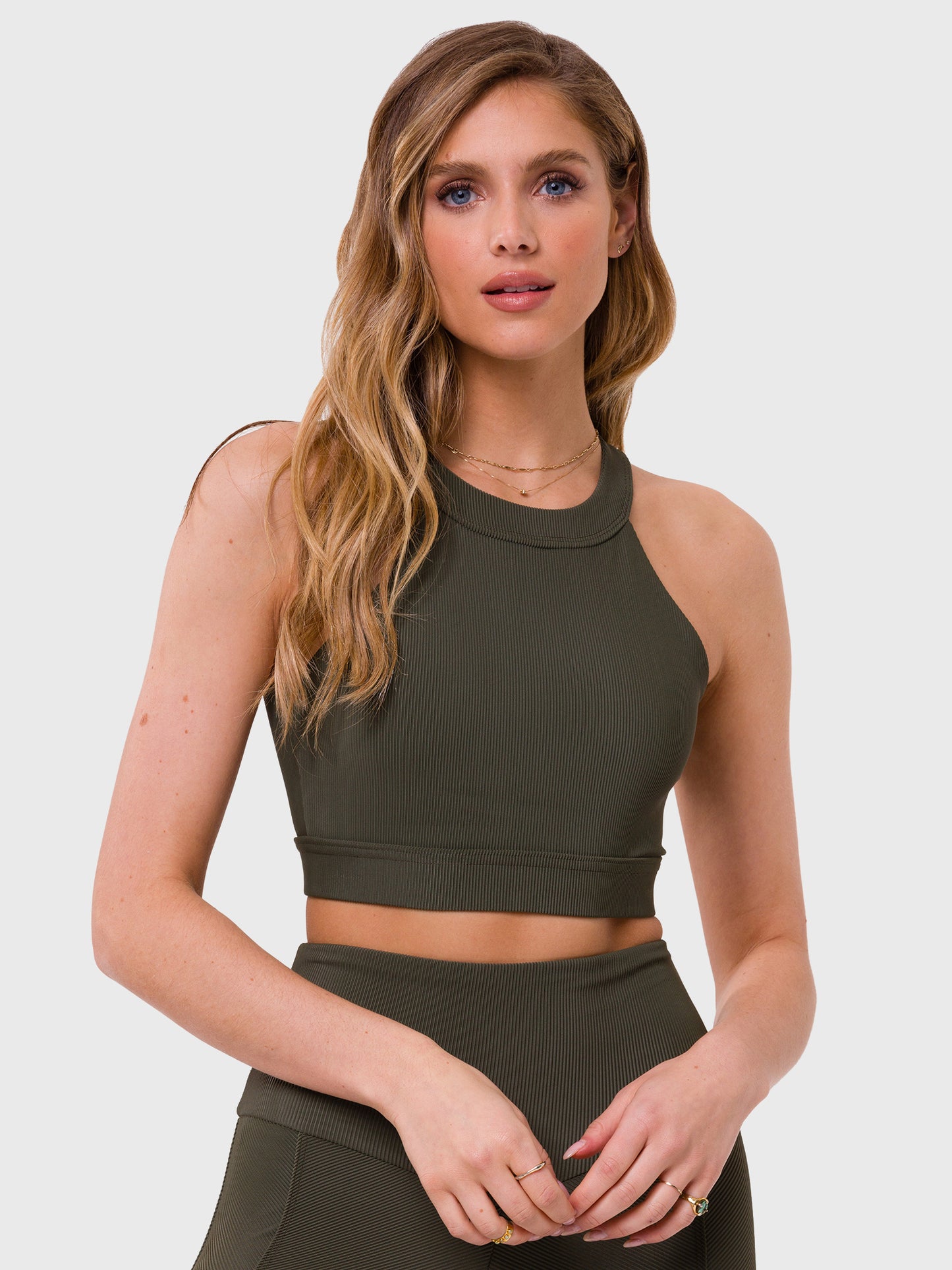 Elevate your sporty look and feel it translate to your workout in the Onzie Women's High Neck Crop Top.
