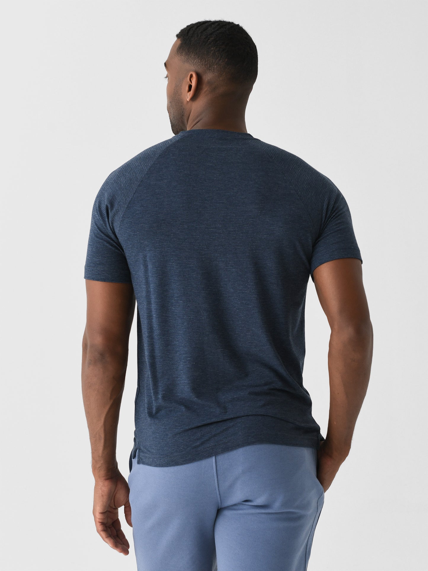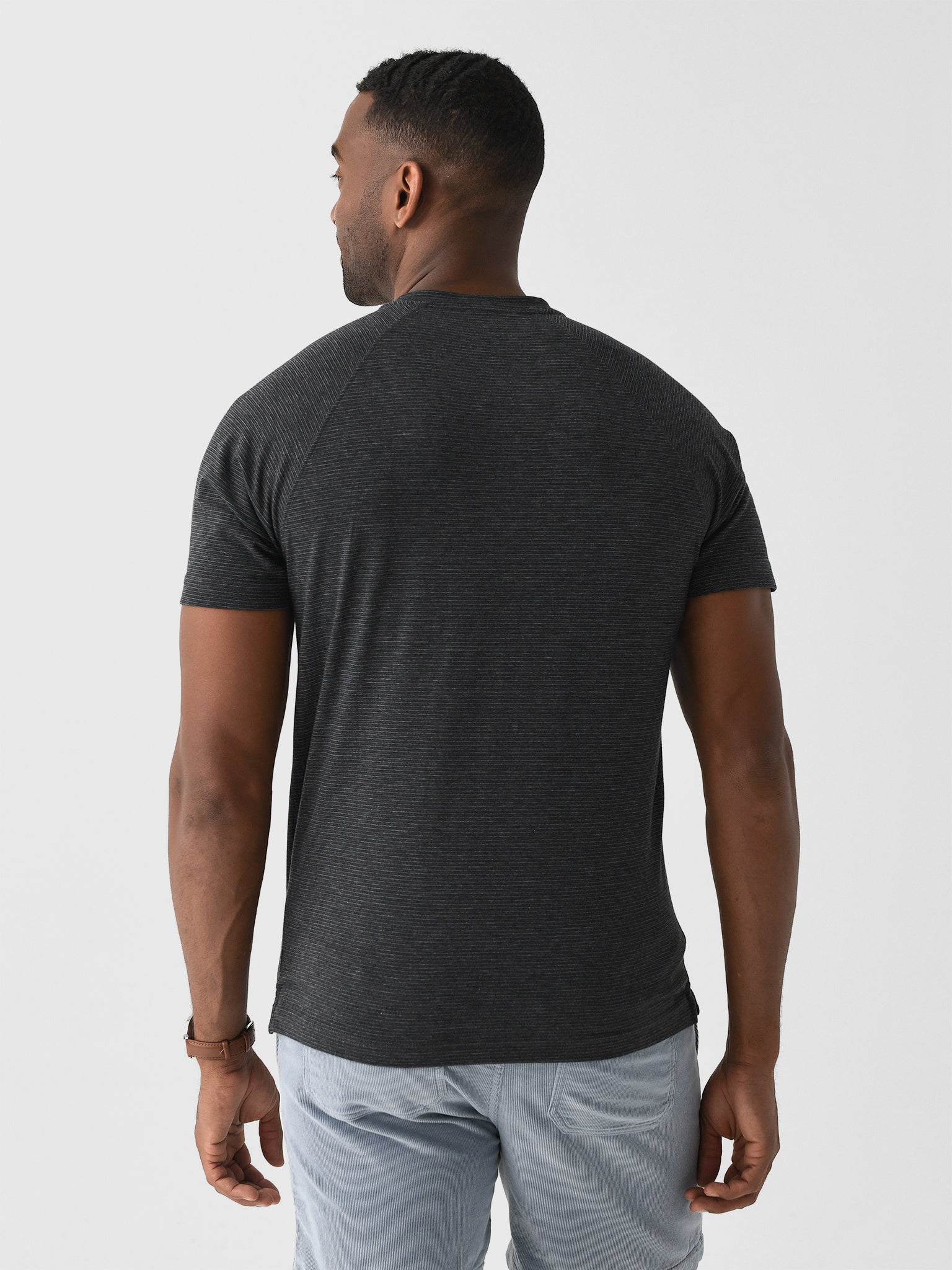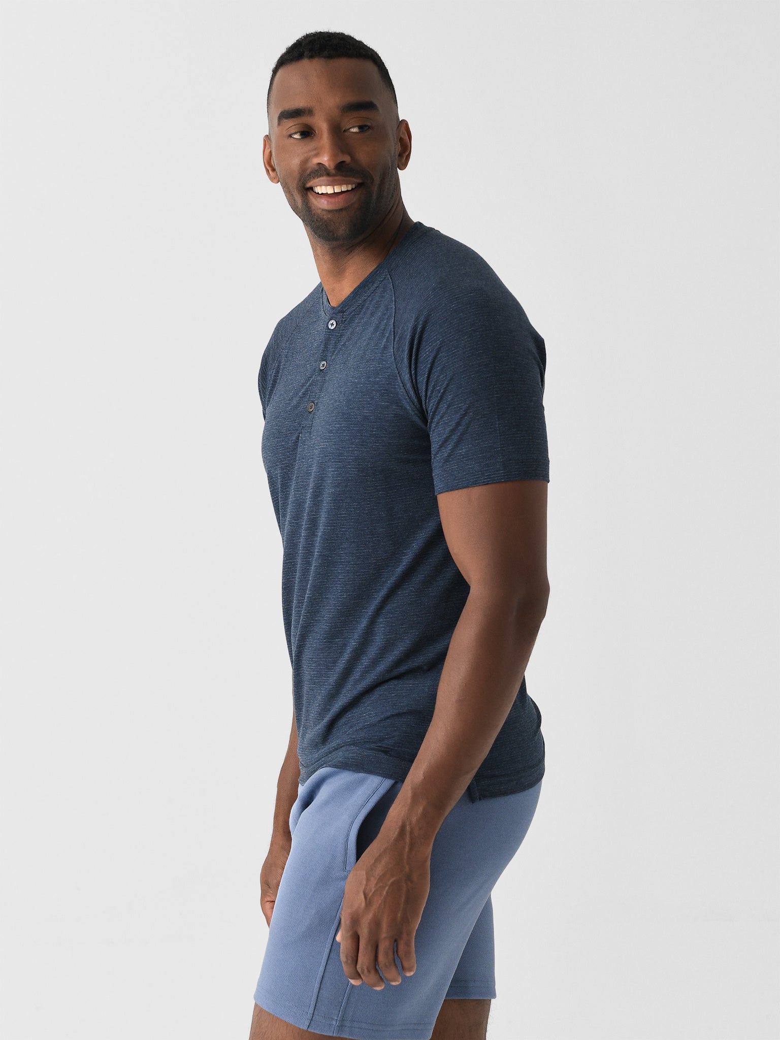This short-sleeve henley shirt is made from a soft fabric blend and features a micro-stripe print.