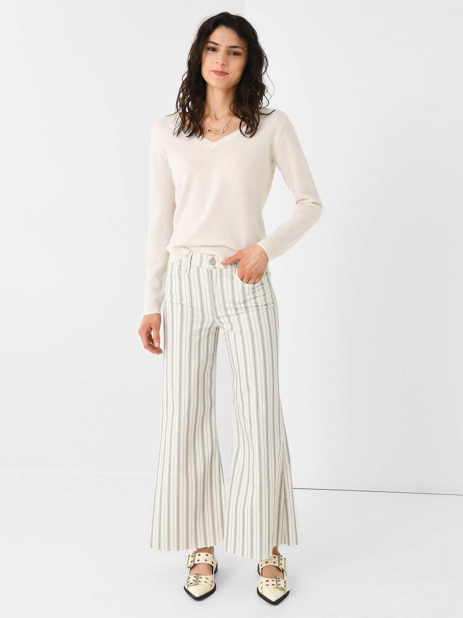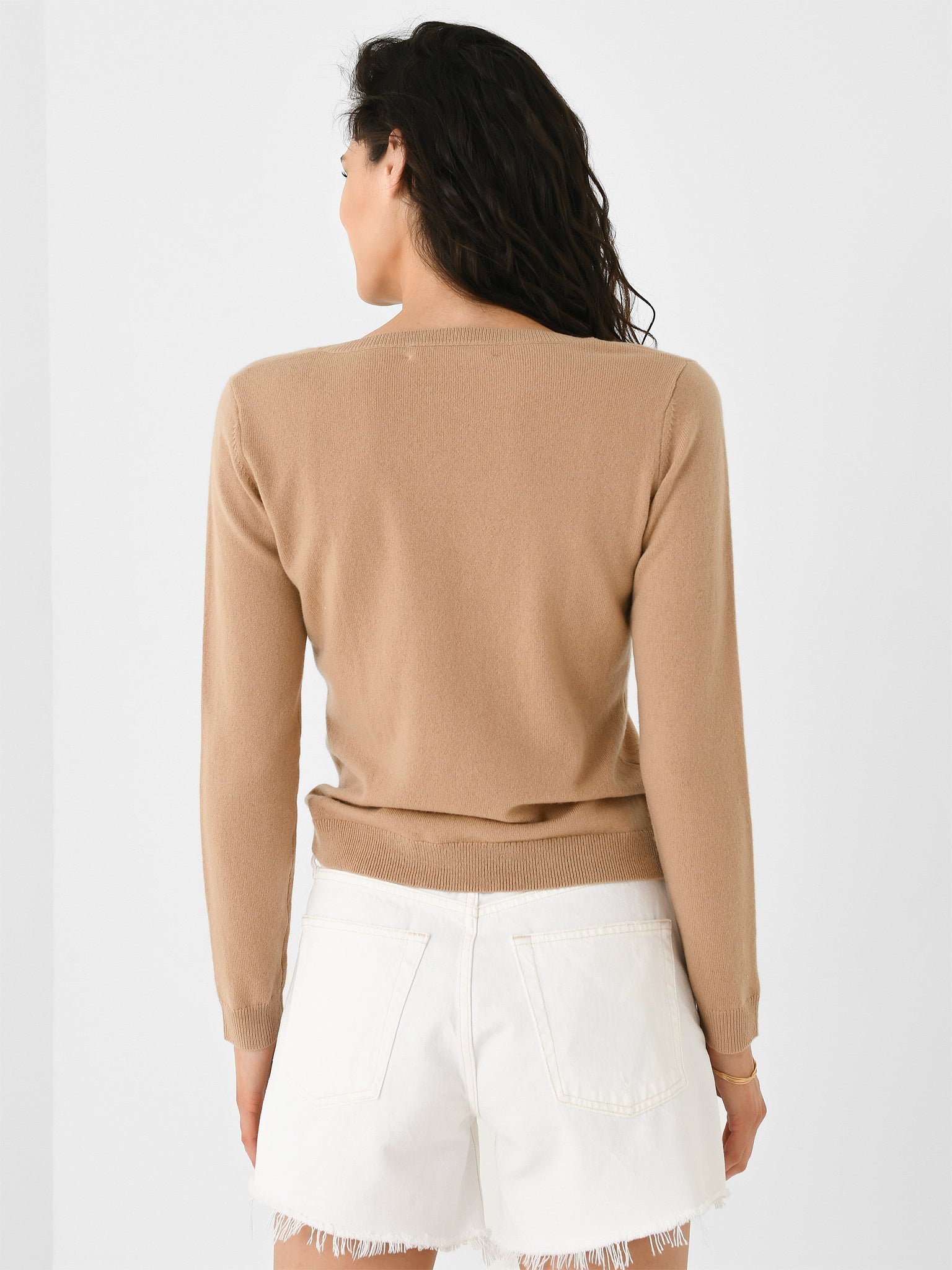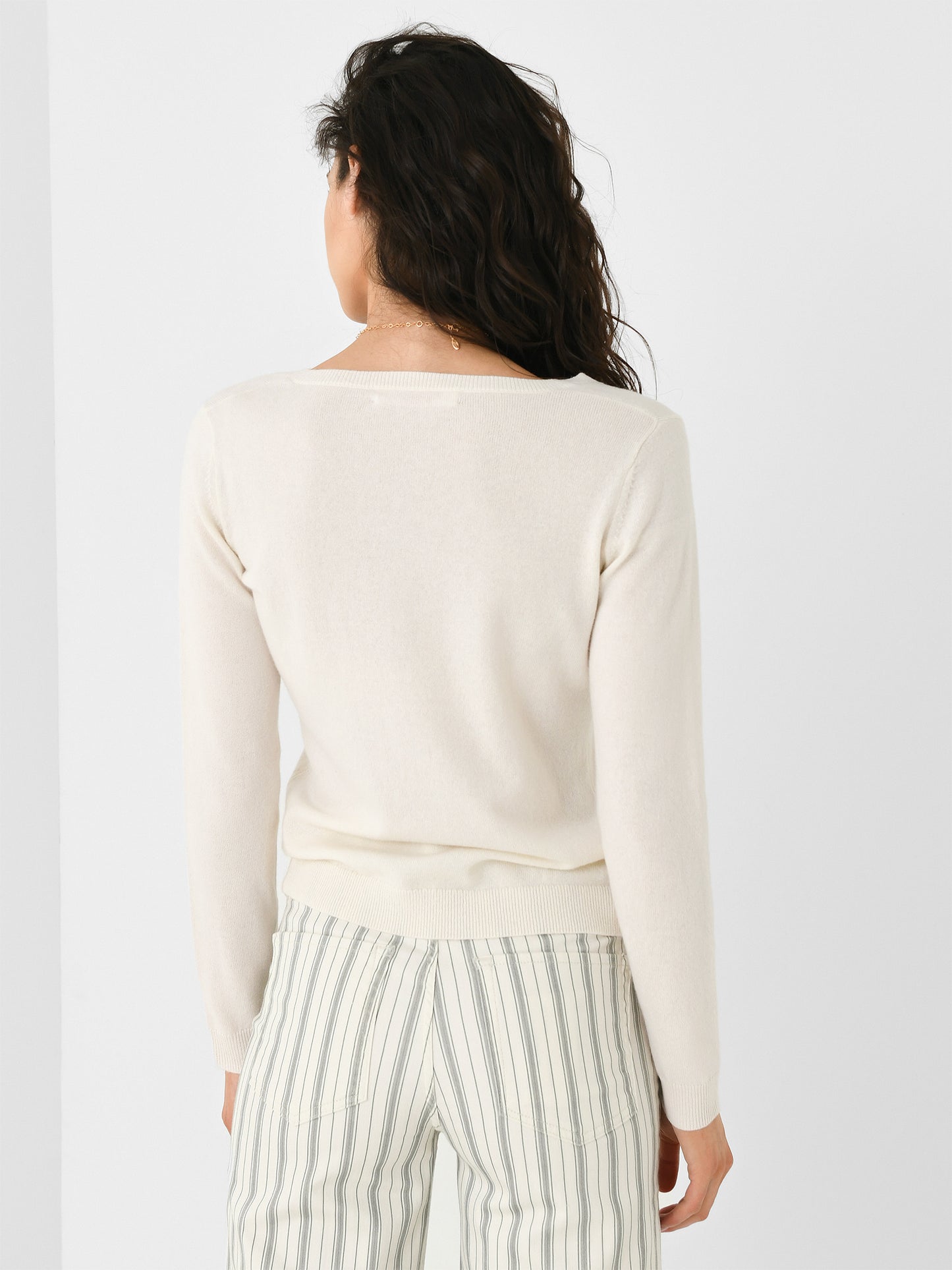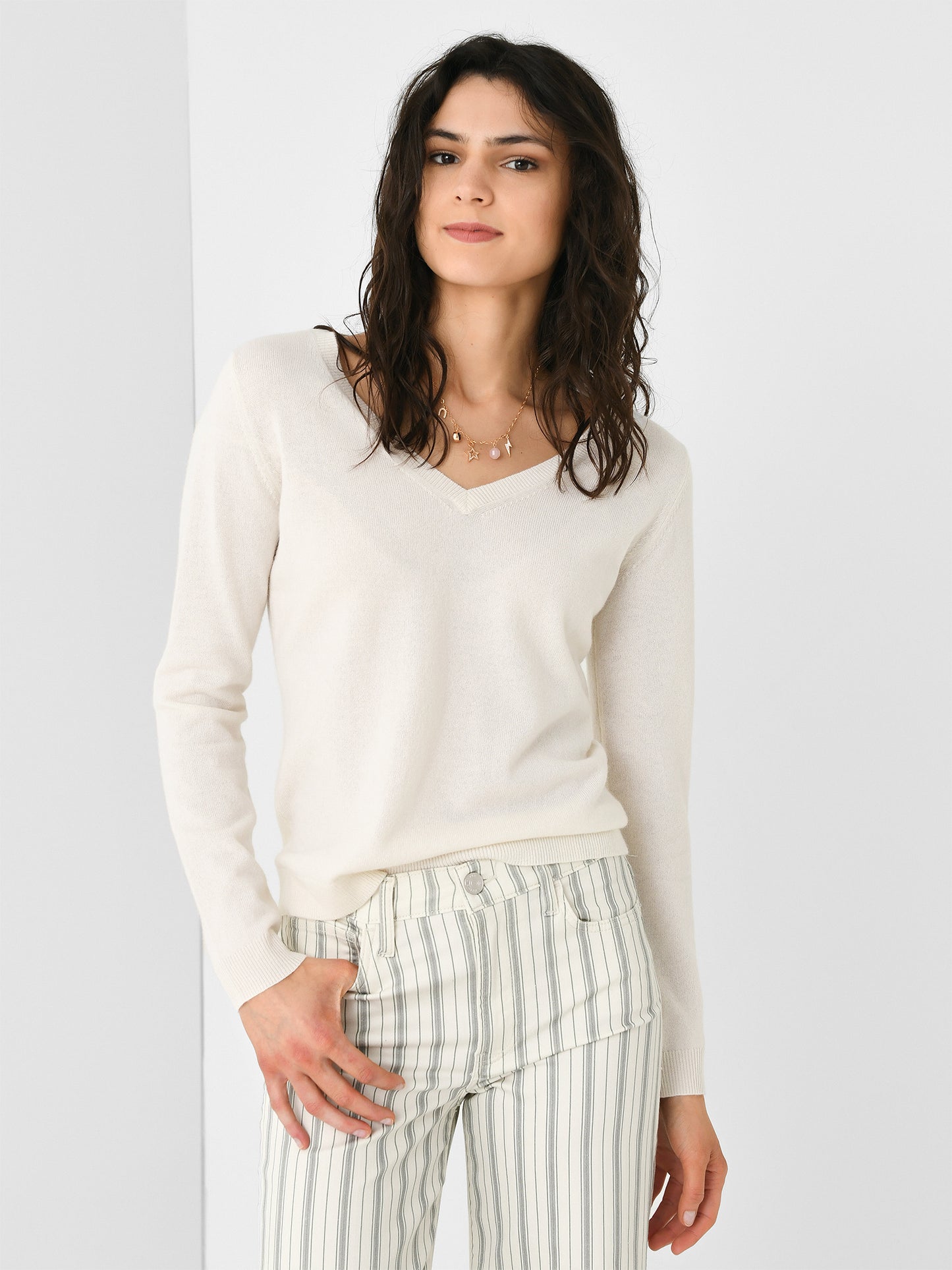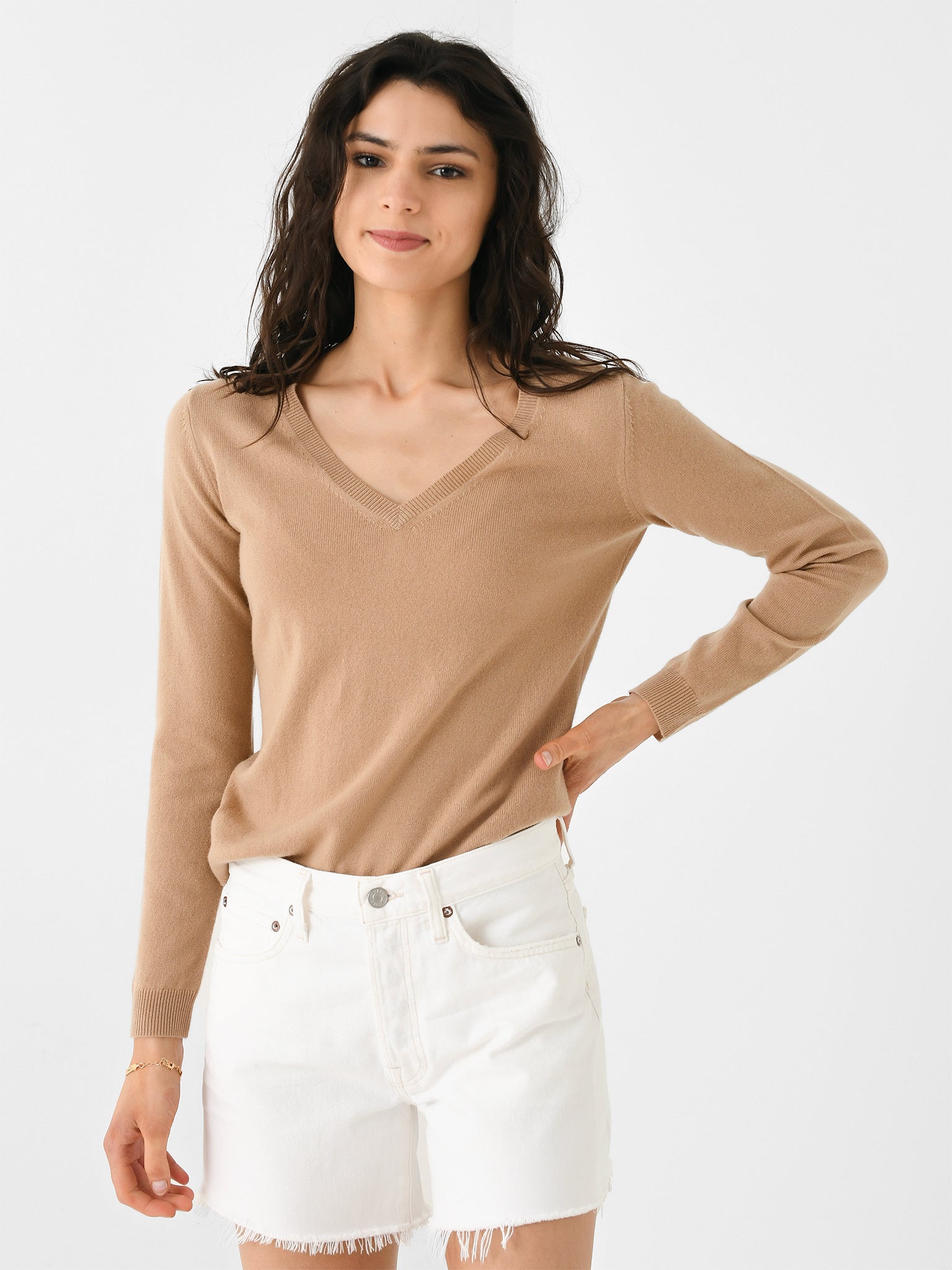 A super-soft cashmere v-neck sweater with ribbed trims.