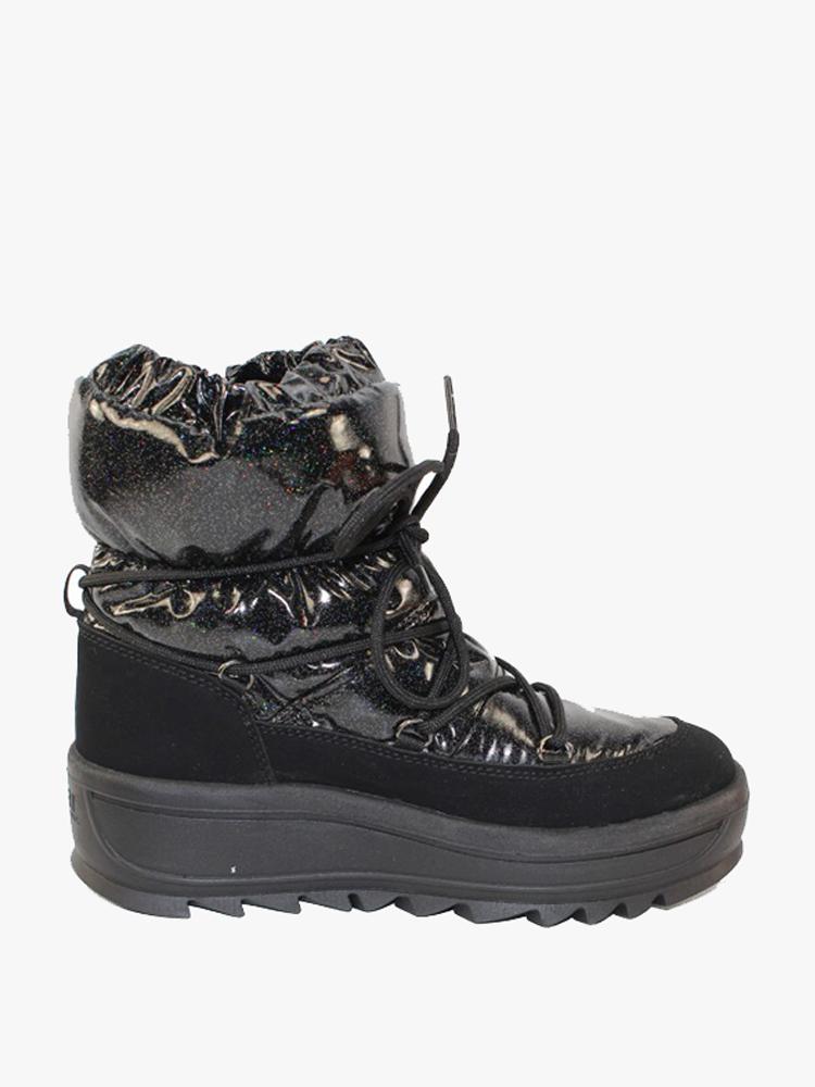 Line your feet with cozy faux fur in these Pajar Women`s Black Taya Crystal Boots.