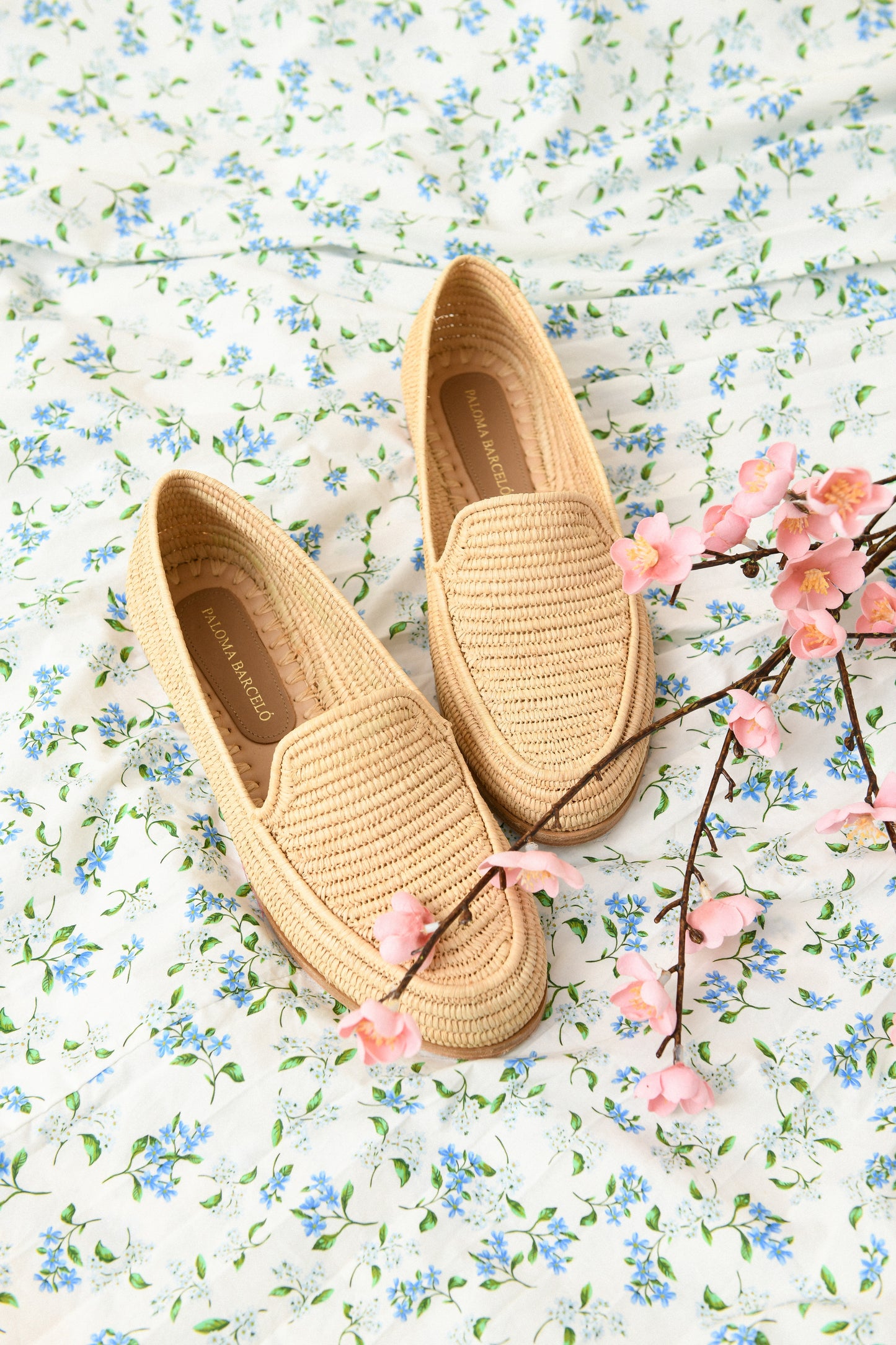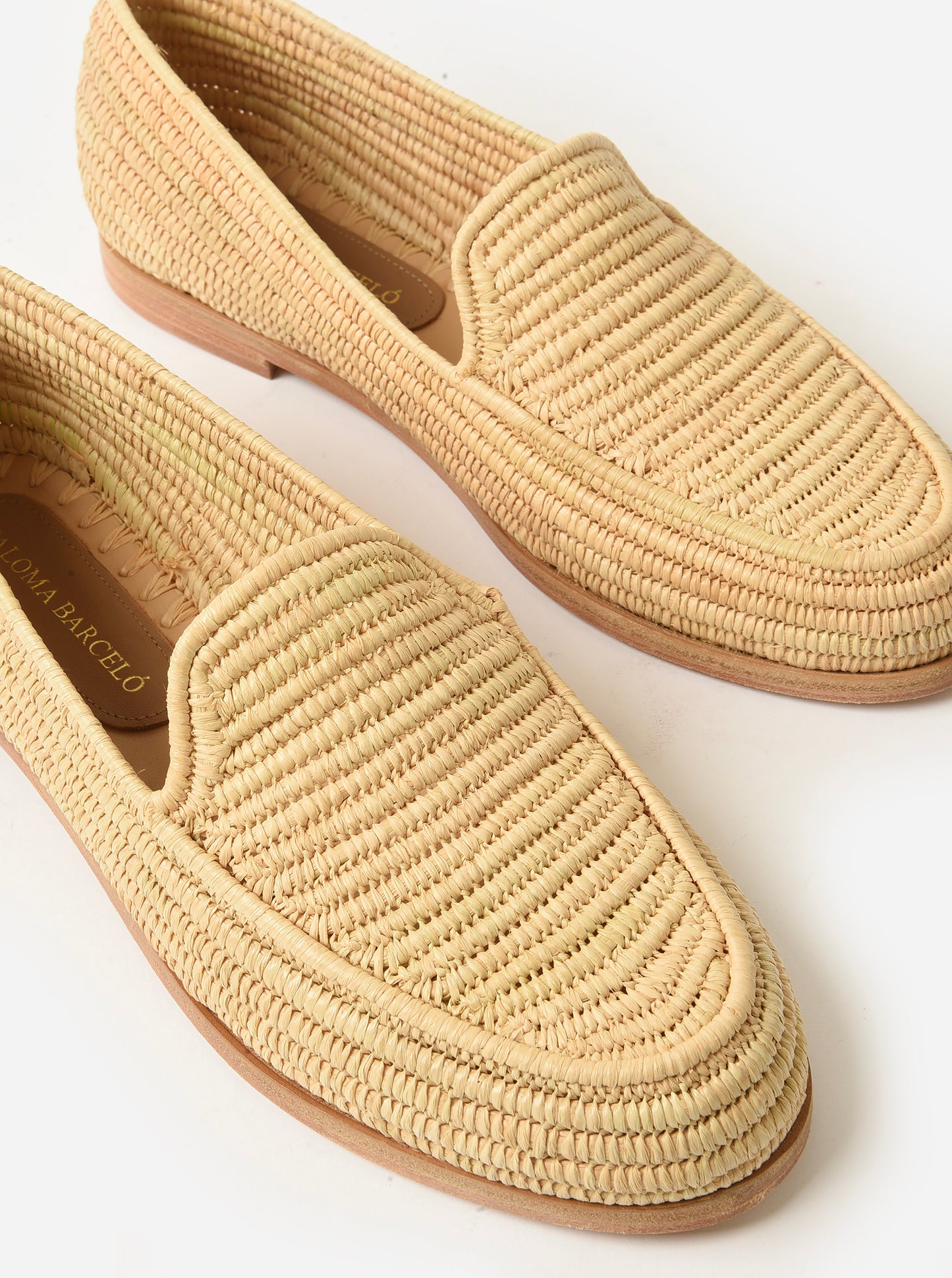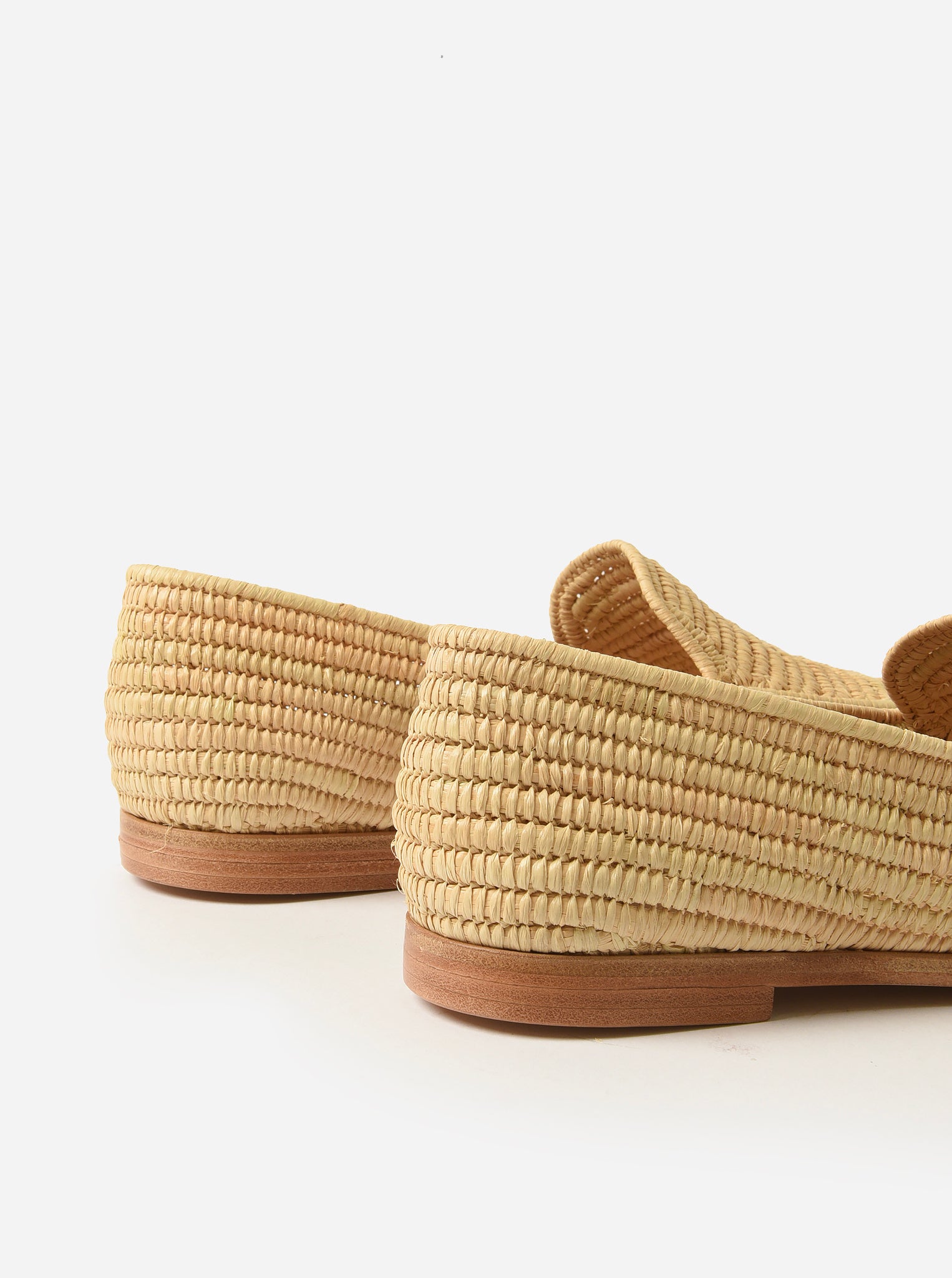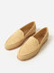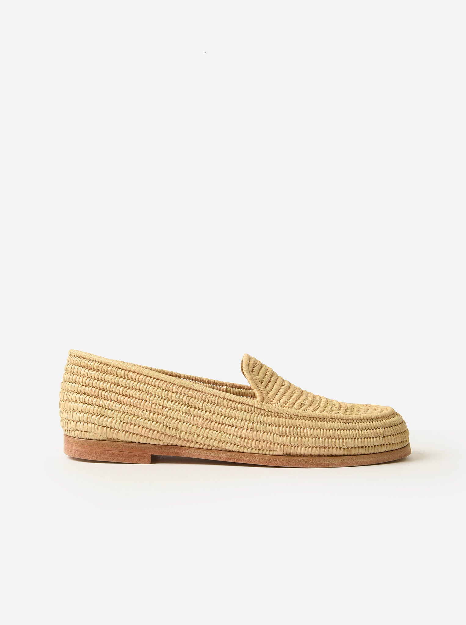 A mocassin-style loafer made from natural raffia with a durable leather sole.