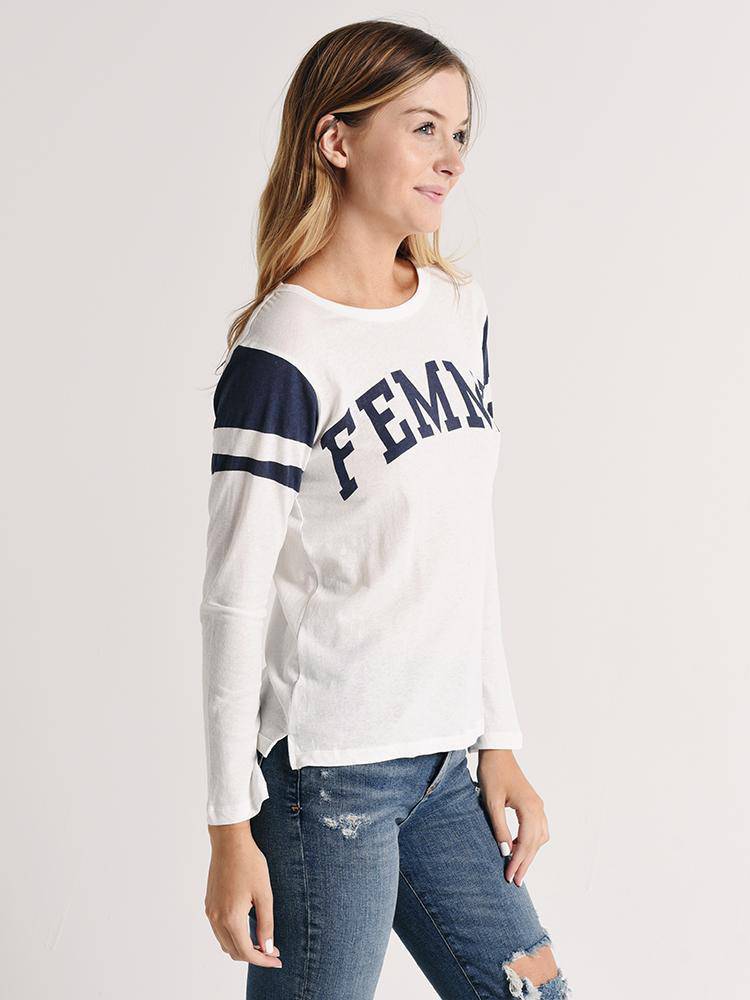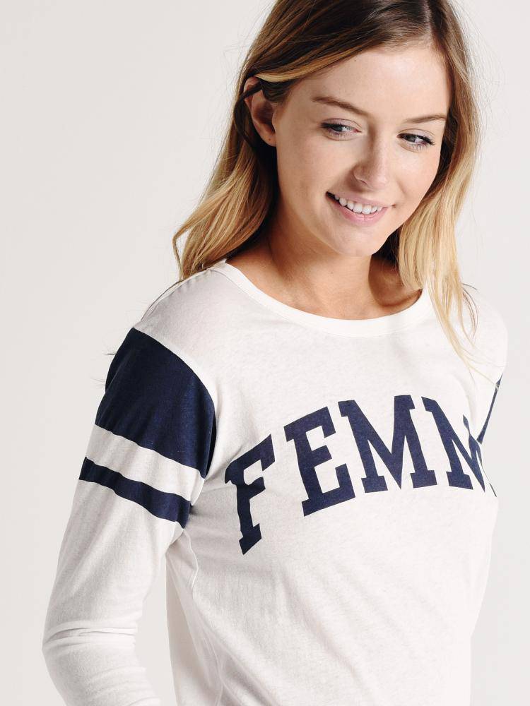 Get in the game with the Pam and Gela Shrunken Football 3/4 Sleeve with Logo.