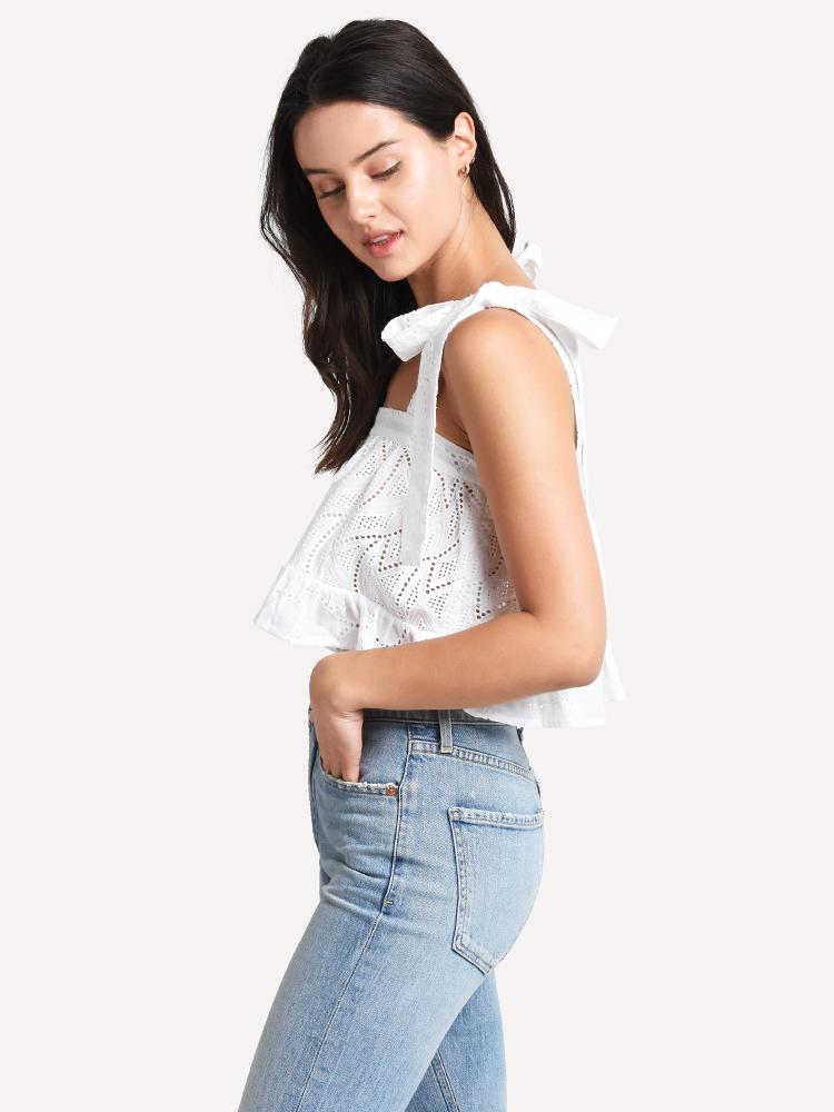 Broderie Anglaise adorns the whimsical Paper London Emely Top, making it a must have for the season.