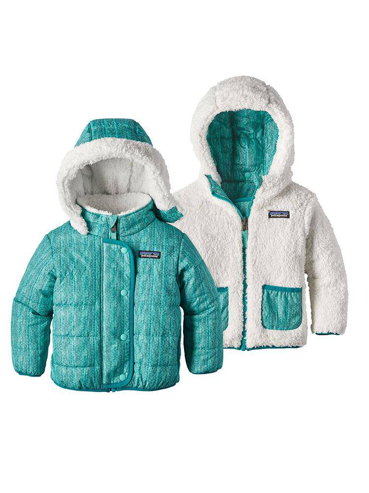 Keep your baby warm in the Patagonia Baby Reversible Dream Song Hoody