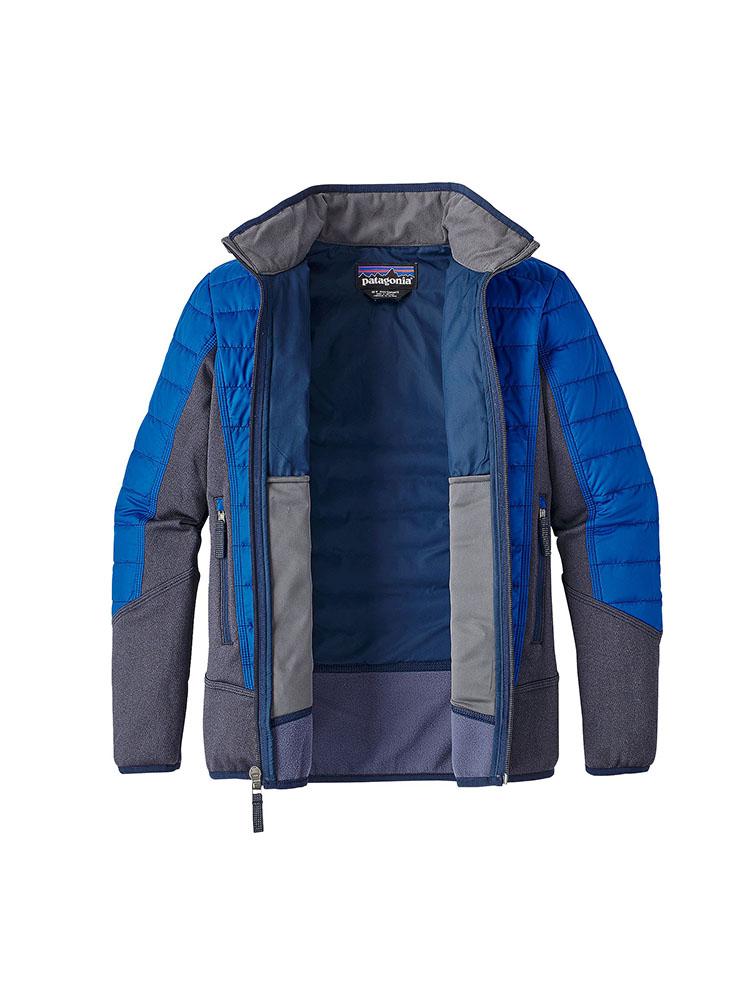With low bulk the Patagonia Down Hybrid Jacket takes him from school to play.