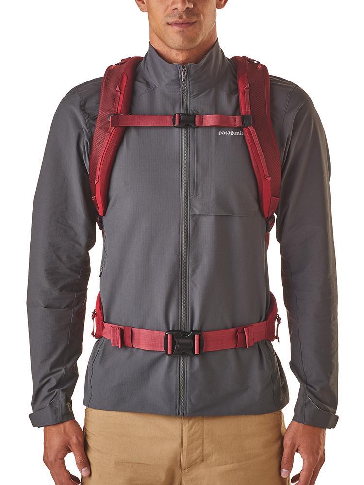 The Patagonia Nine Trails Backpack 28L features a breathable and moisture-wicking back mesh panel for day hikes.