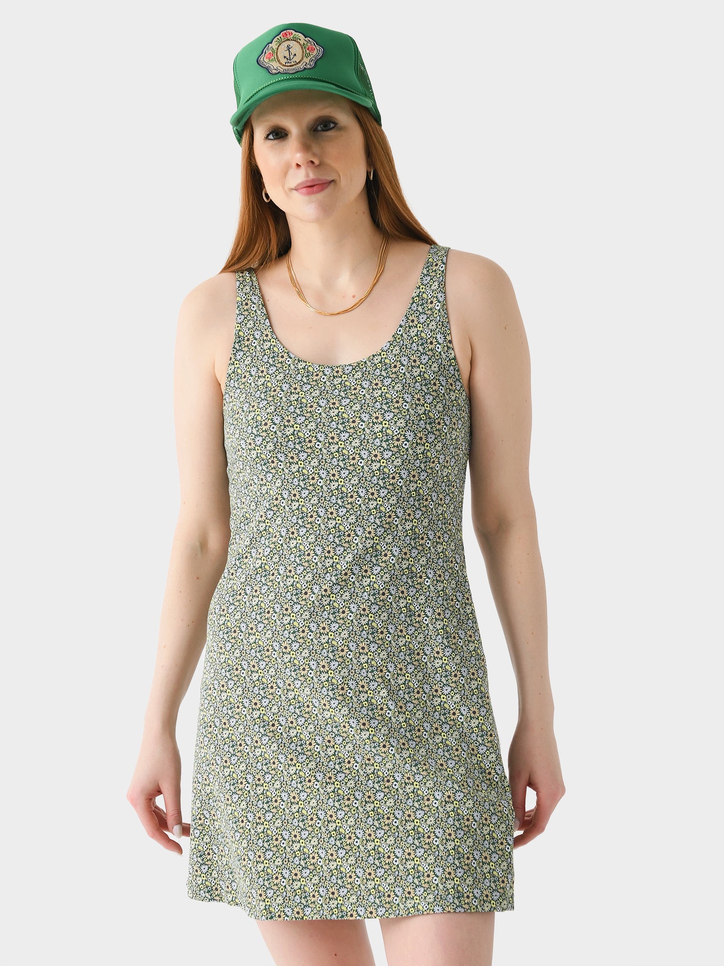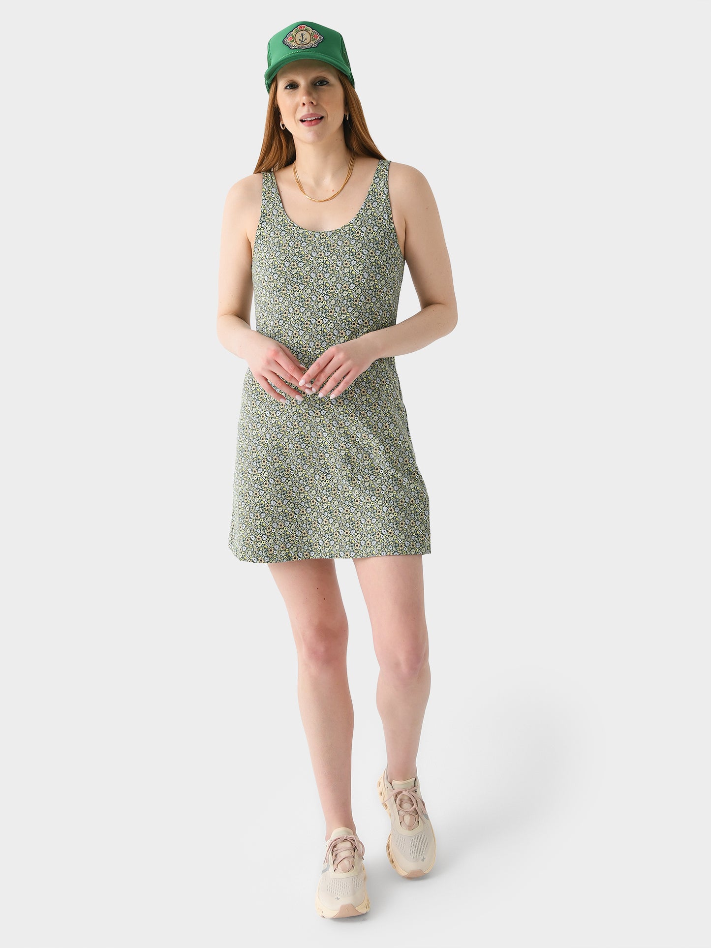 A breathable performance dress with a built-in light compression liner with an interior short.