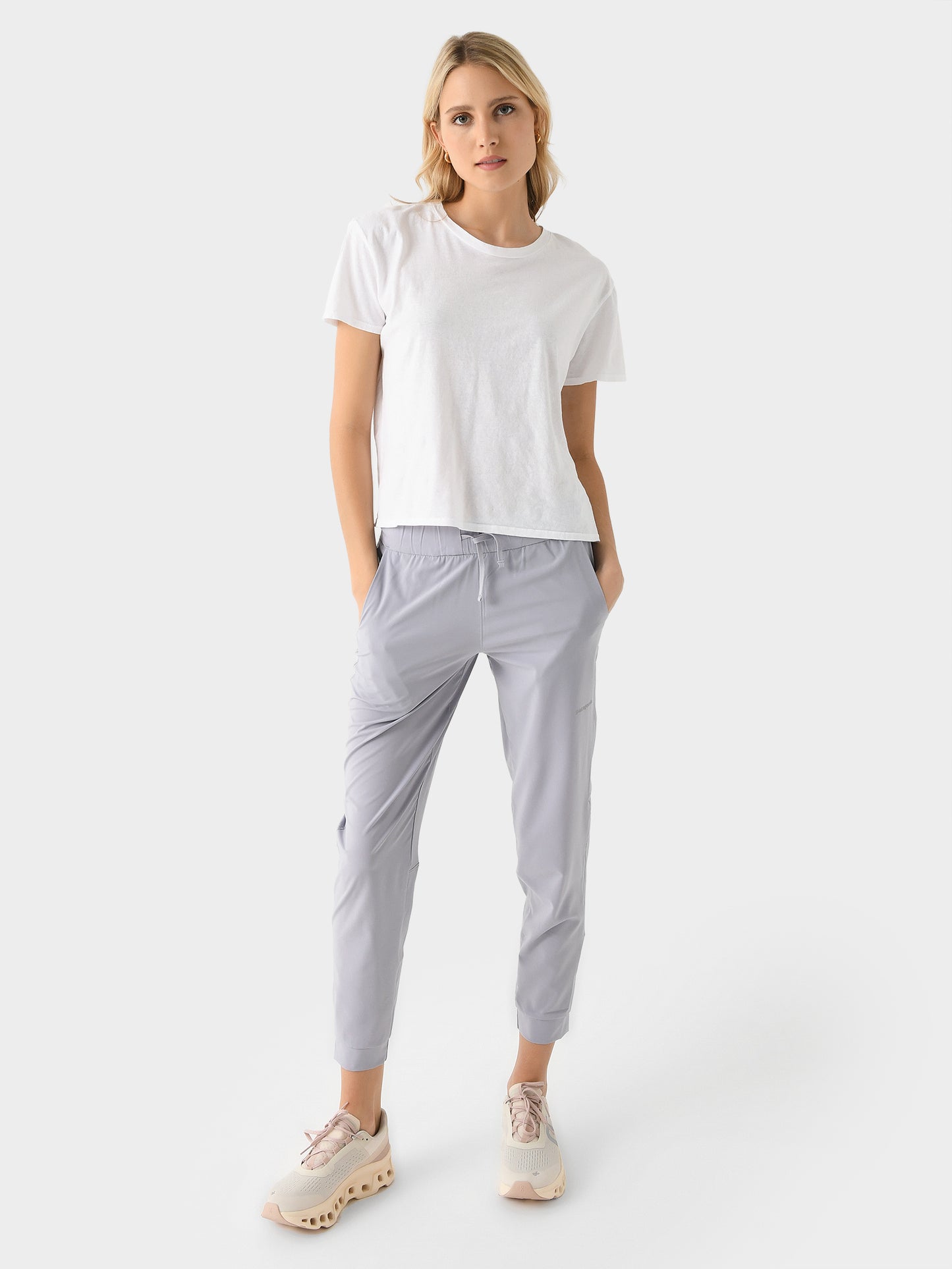 A slim-fitting performance jogger made from breathable, quick-drying fabric with a water-repellent finish.