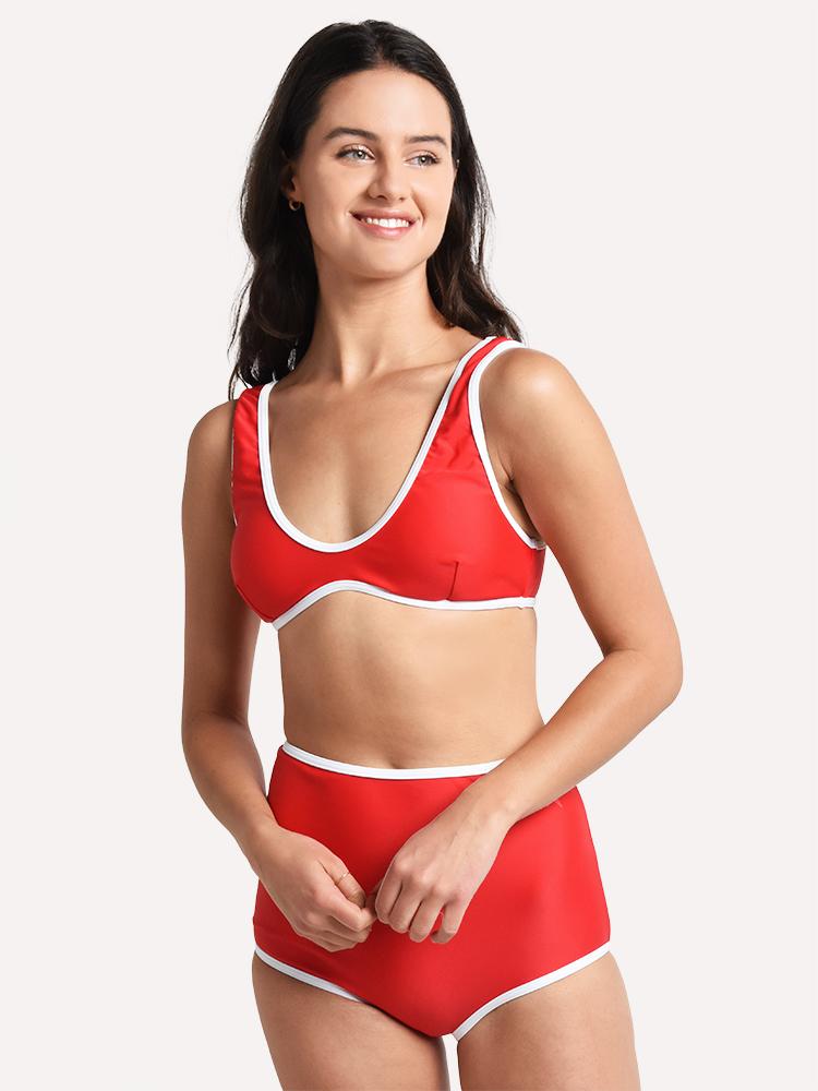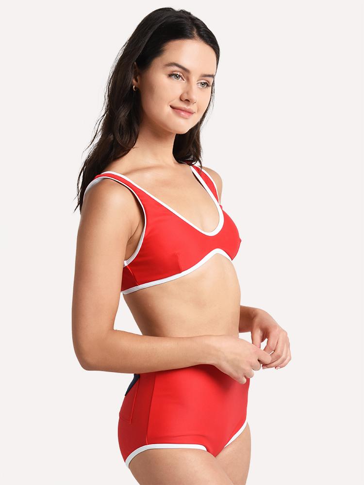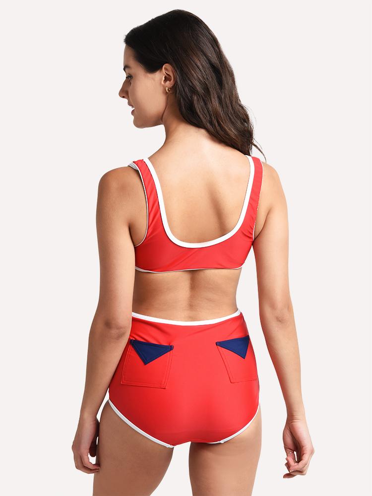 The Perfect Moment Women's High-Waisted Bikini Set is classic retro charm with it's high waisted cut, contrasting color piping, and fun and functional back pockets so you can stow your keys or card. The UPF 50+ chlorine resistant material and removable soft padded cups give extra support and protection. Add some vintage elegance to your swimwear with this classic bikini that flatters every figure.