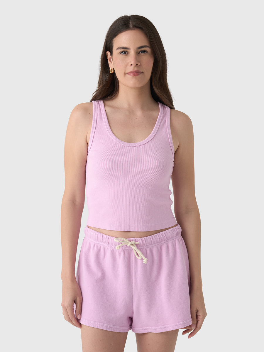 Scoop Crewneck Wide Straps Cropped Silhouette Ribbed Fabrication 95% Cotton, 5% Spandex Slim Fit Model is wearing size Small tank top. Cocoa Powder: Model's Measurements: Height: 5'8" | Bust: 32B | Waist: 25" | Hips: 36" | Dress Size: 2 (US) Heather Grey: Model's Measurements: Height: 5'9.5" | Bust: 32C | Waist: 26.5" | Hips: 37" | Dress Size: 2-4 (US) Bright Ivory: Model's Measurements: Height: 5'9" | Bust: 32B | Waist: 24.5" | Hips: 37.5" | Dress Size: 2-4 (US) Dark Heather Grey: Model's Measurements: Height: 5'9" | Bust: 34B | Waist: 24.5" | Hips: 37" | Dress Size: 2-4 (US) Pink Bloom, Navy: Model's Measurements: Height: 5'10.5" | Bust: 32B | Waist: 25.5" | Hips: 36.5" | Dress Size: 0-2 (US) Sugar Pink: Model's Measurements: Height: 5'8" | Bust: 34B | Waist: 25.5" | Hips: 35" | Dress Size: 2-4 (US)