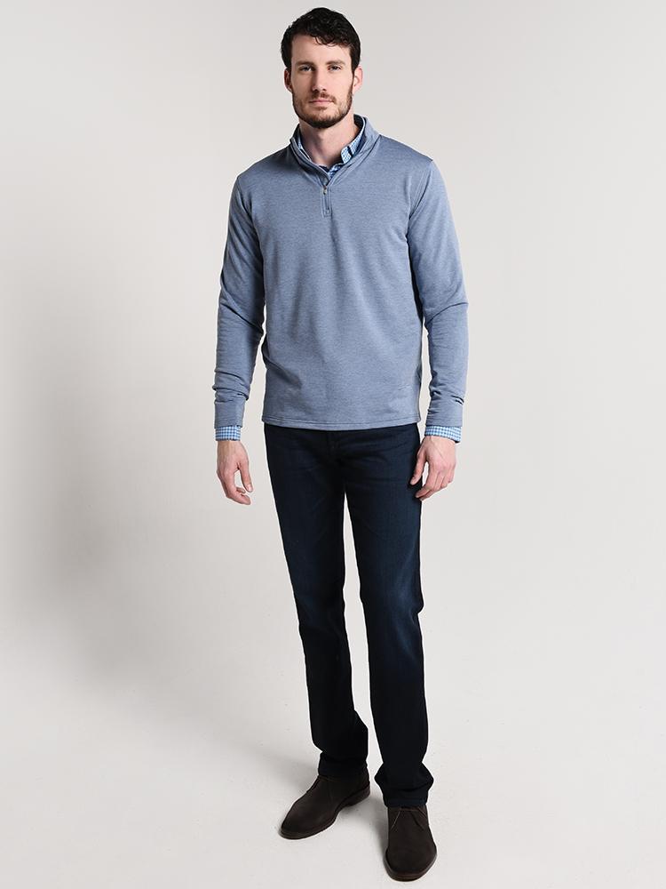The Peter Millar Birchmont Stretch Melange Ribbed Quarter-Zip offers four-way stretch for easy wear.