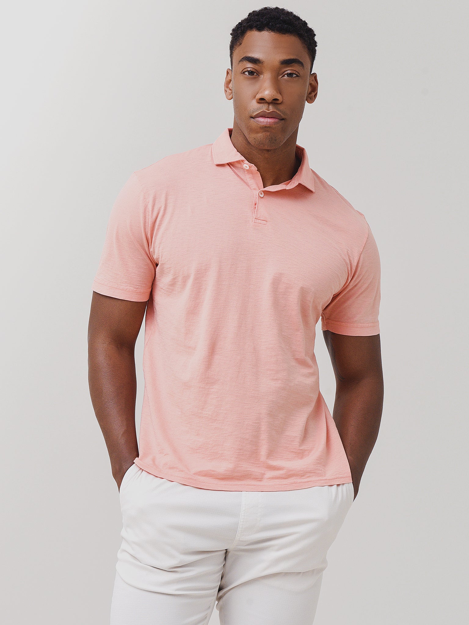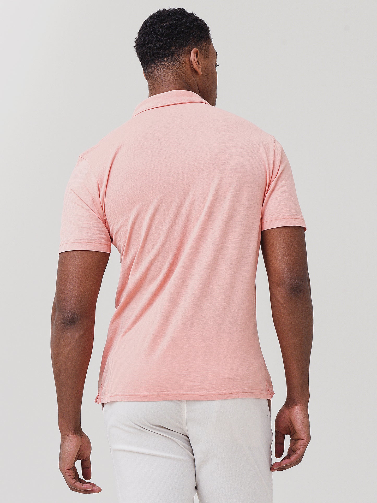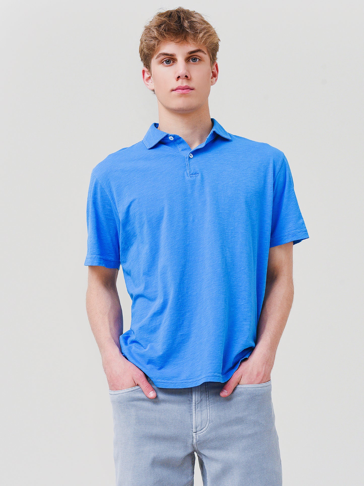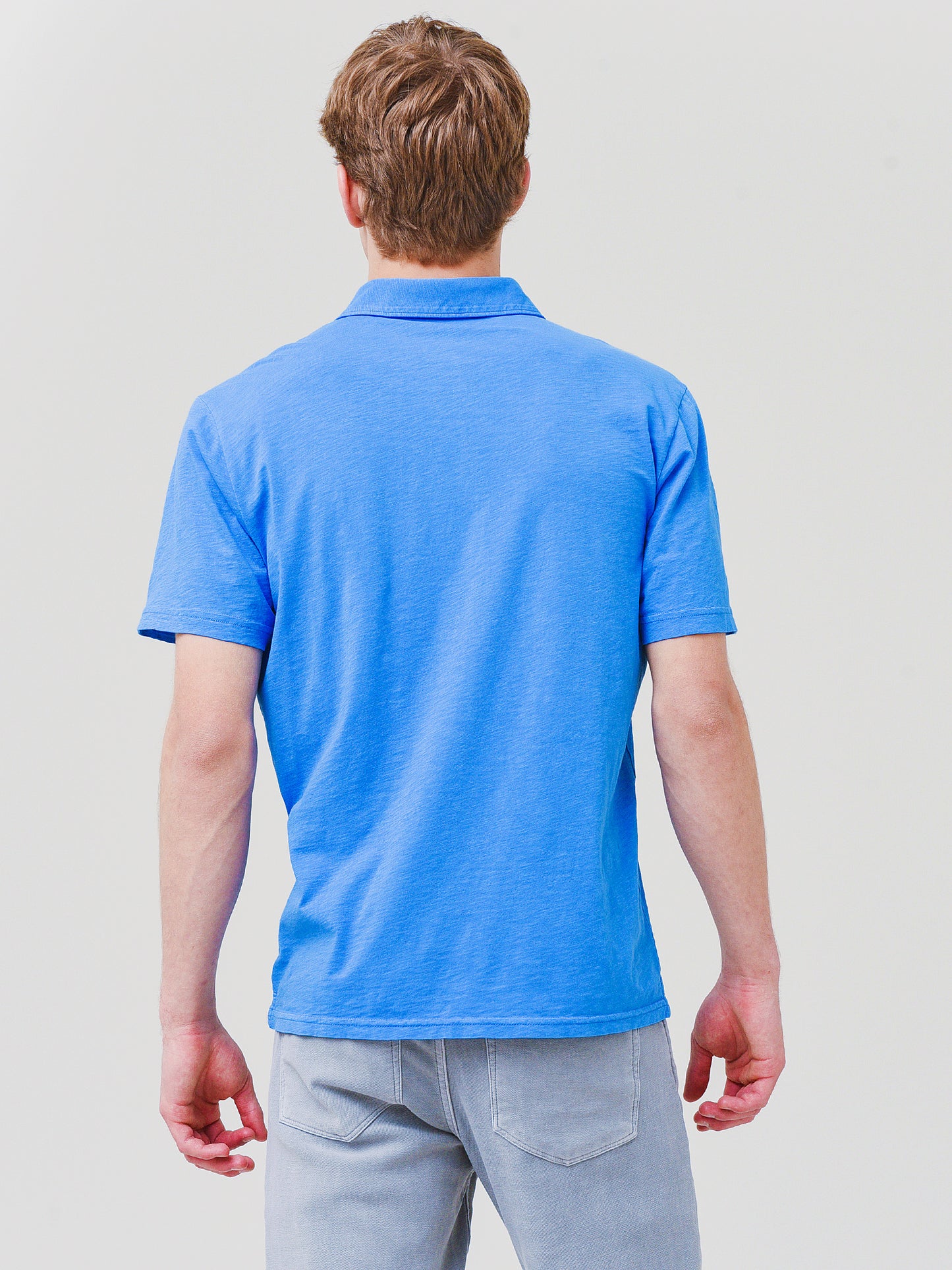 Garment-dyed polo with a cutaway collar and two-button placket.