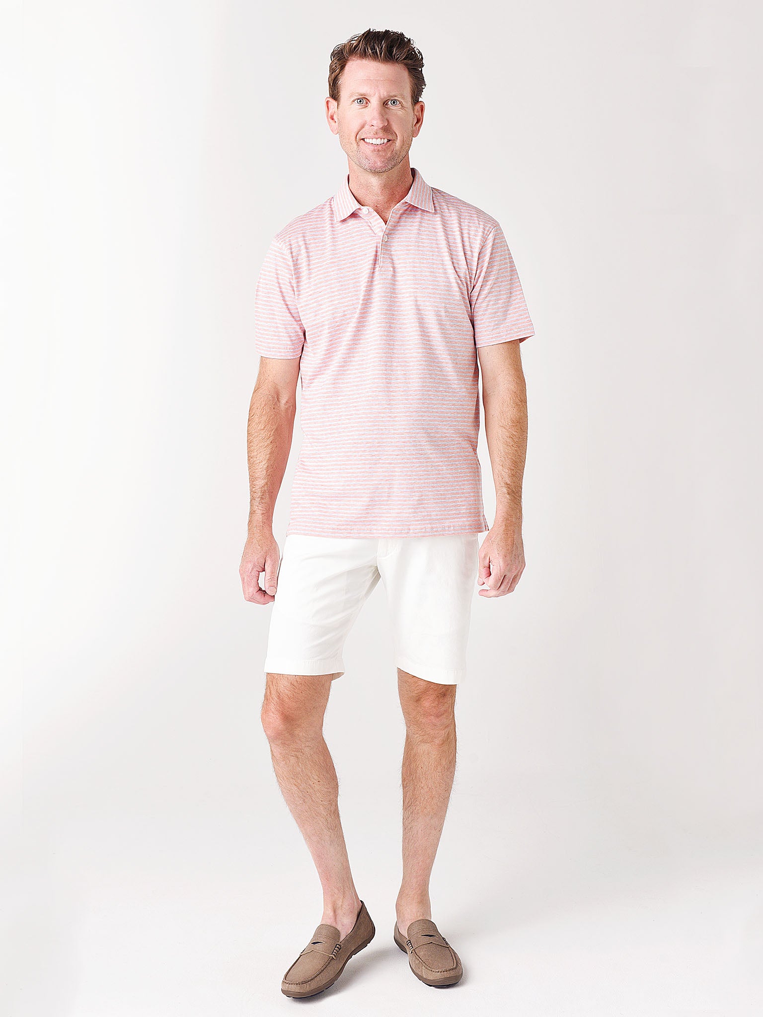 - Model is wearing size Medium polo.