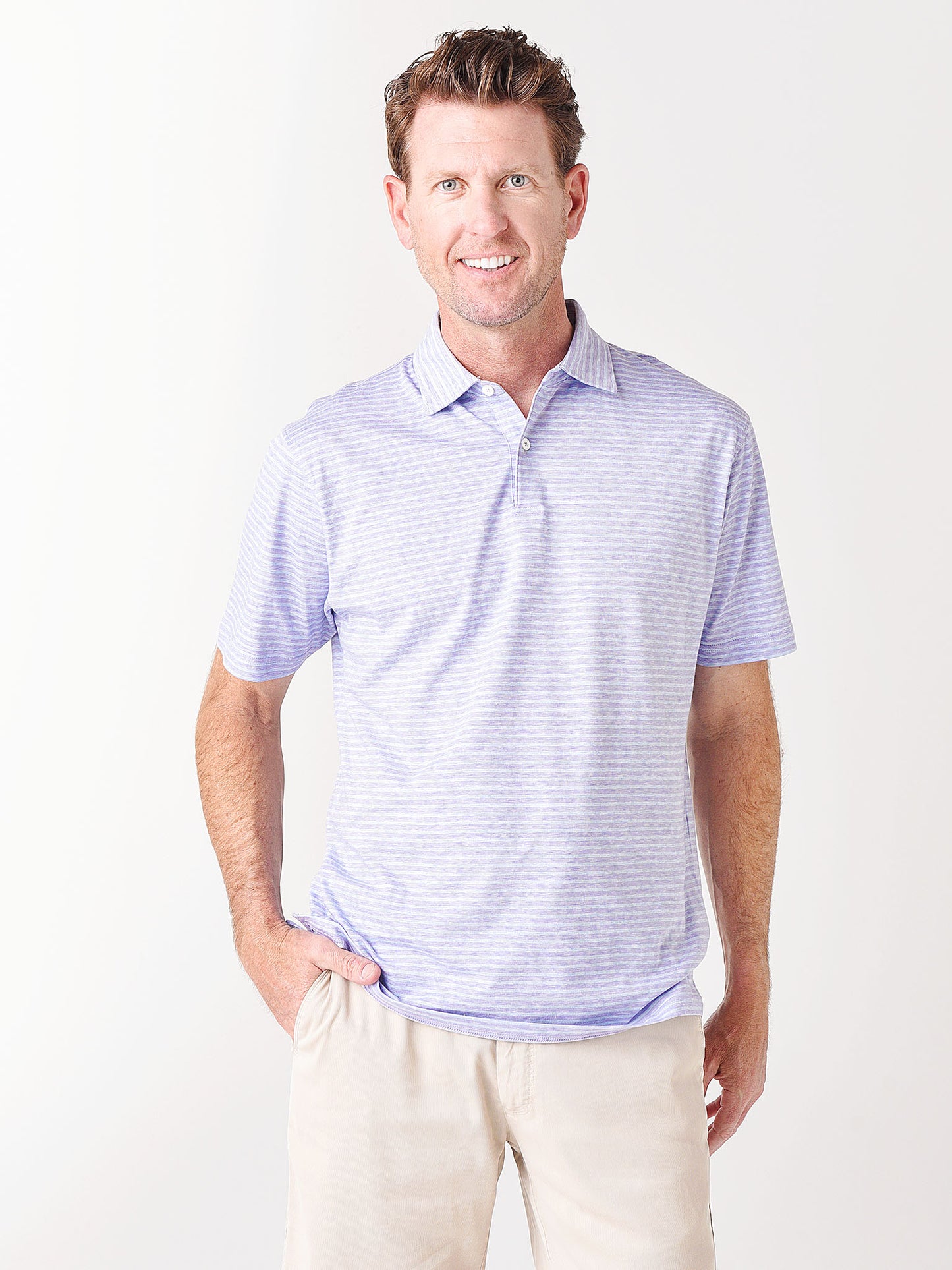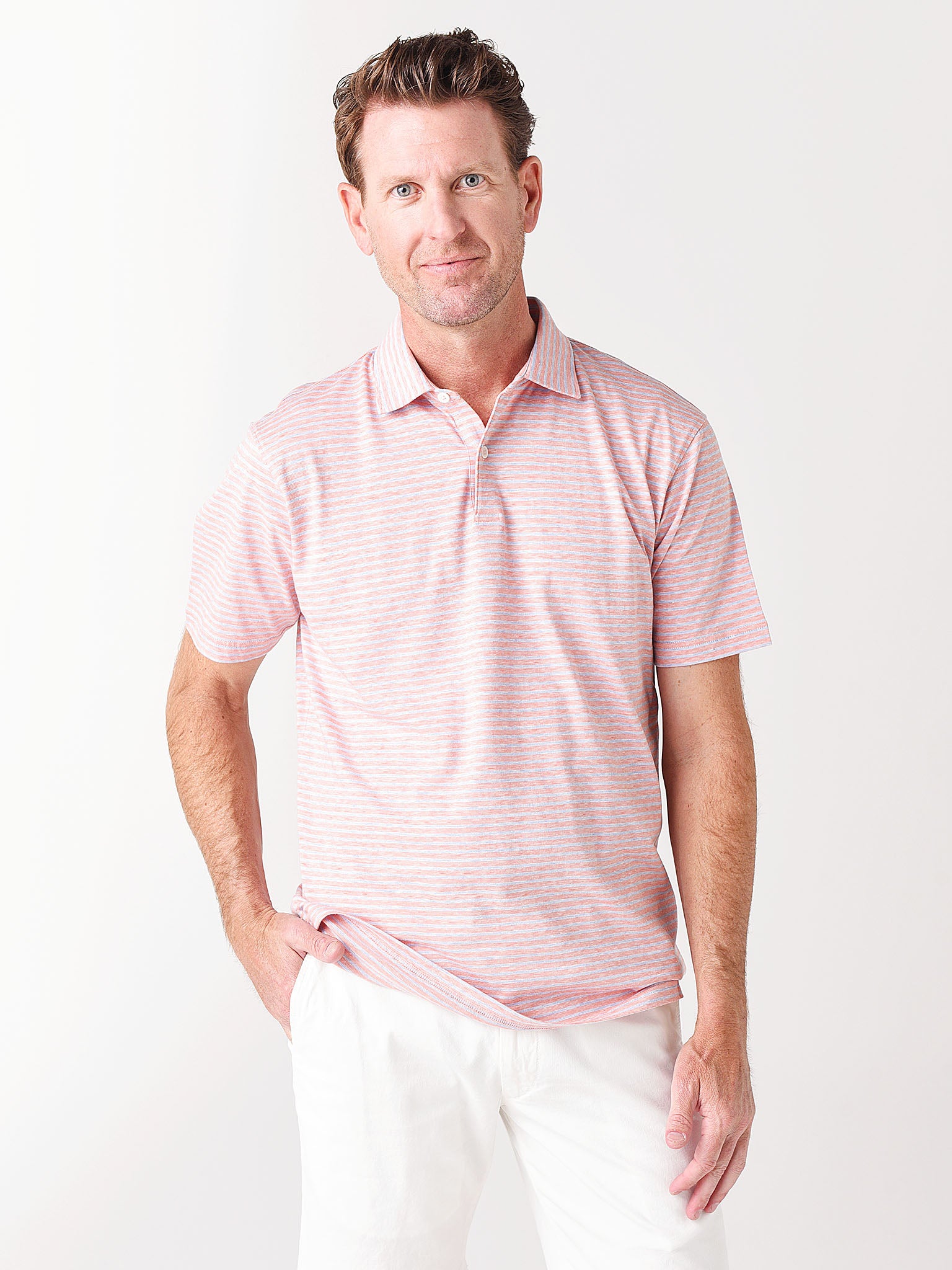 The Marseille polo from Peter Millar offers easygoing comfort in an elegant silhouette. It's crafted from a blend of soft cotton and linen for a supremely lightweight feel