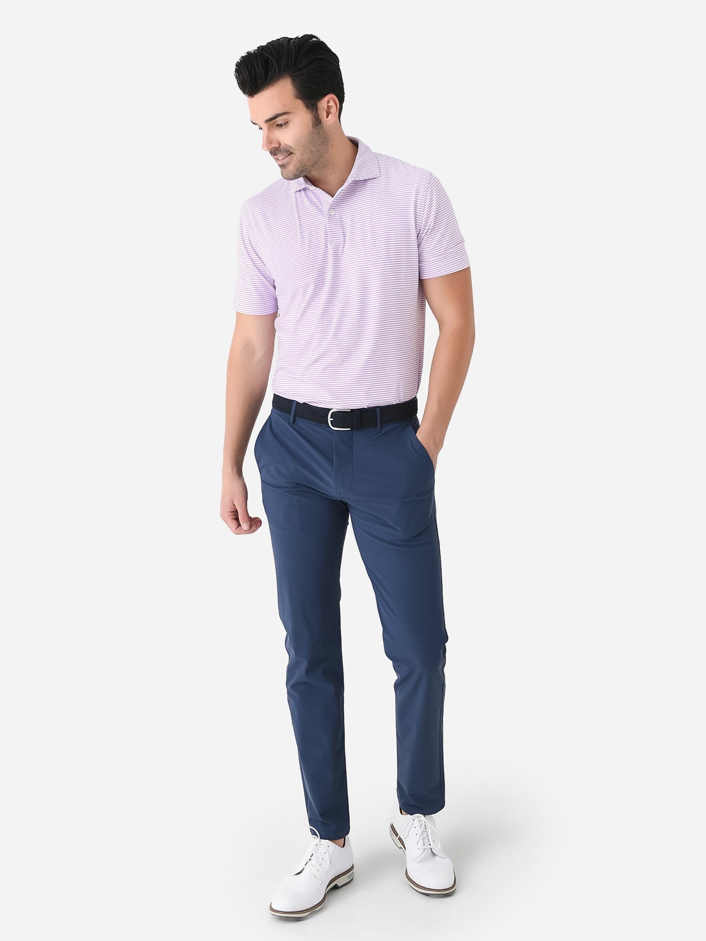 - Model is wearing size Medium polo.