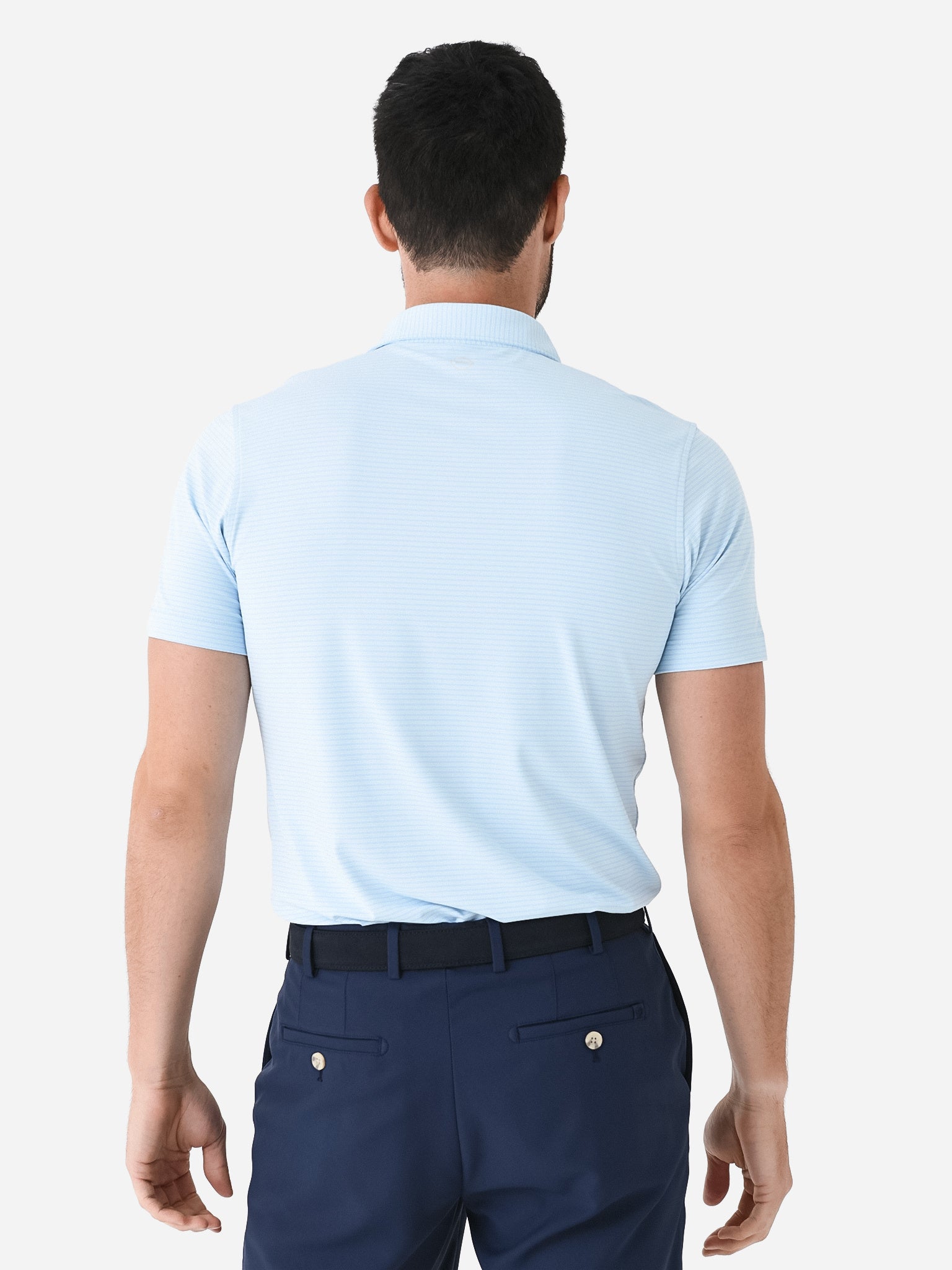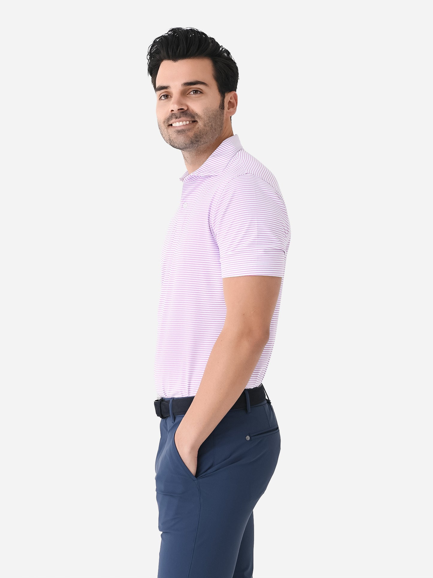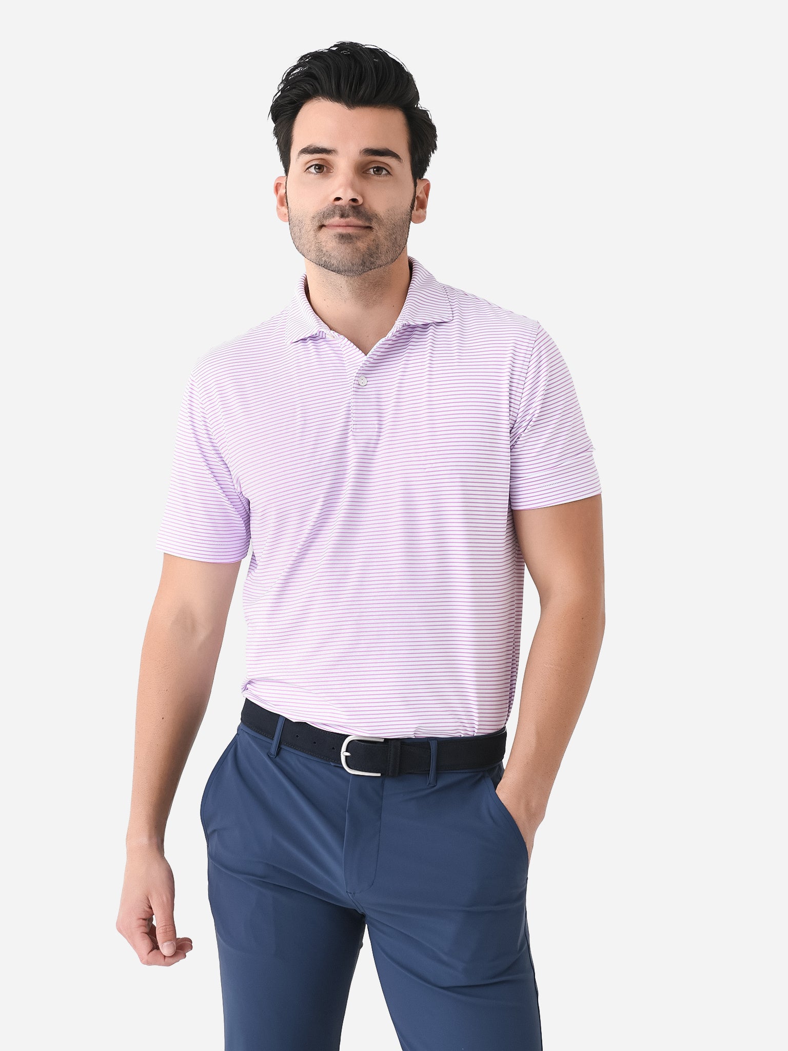 Moisture-wicking polo made with comfortable stretch and antimicrobial technology.