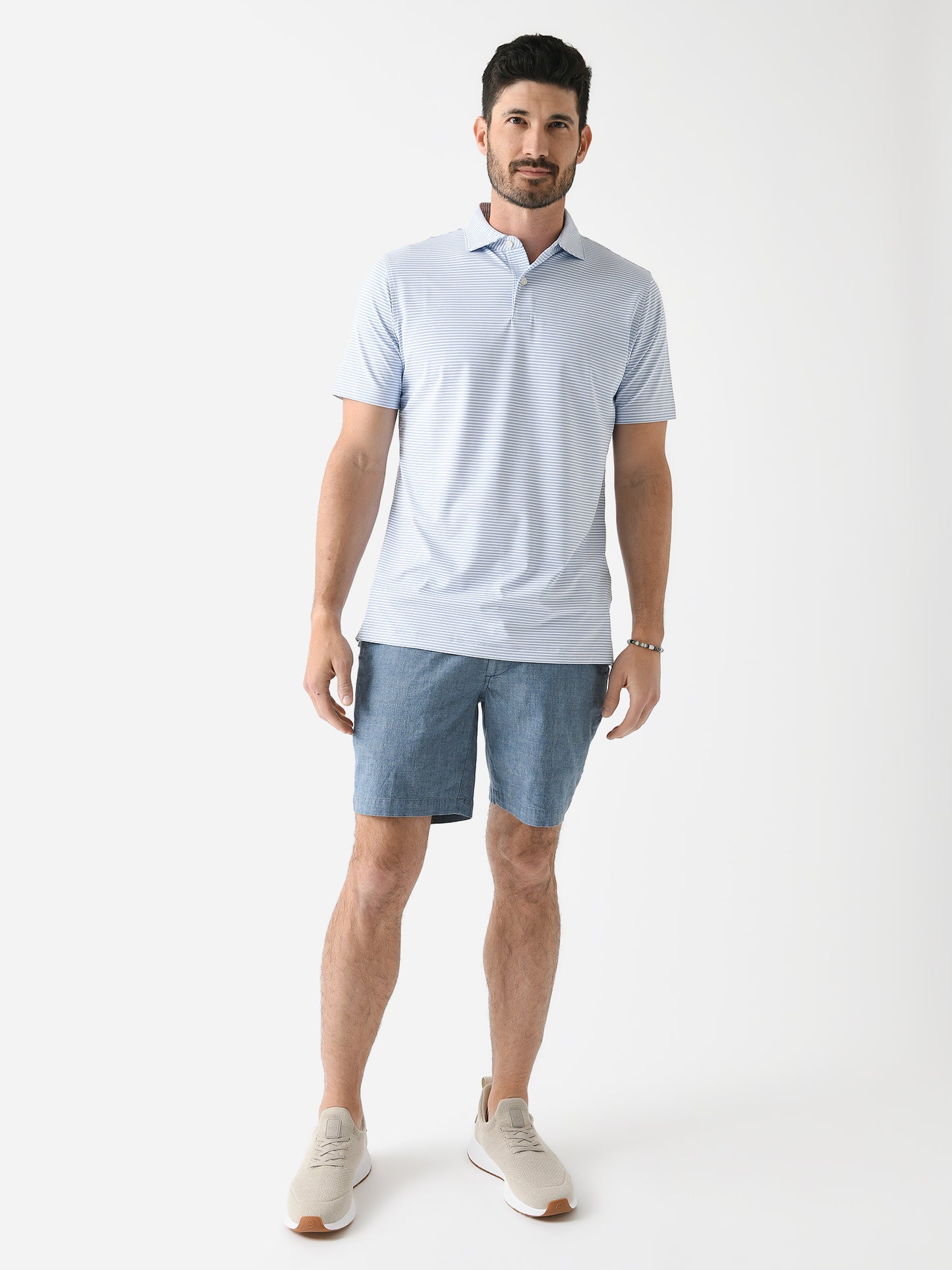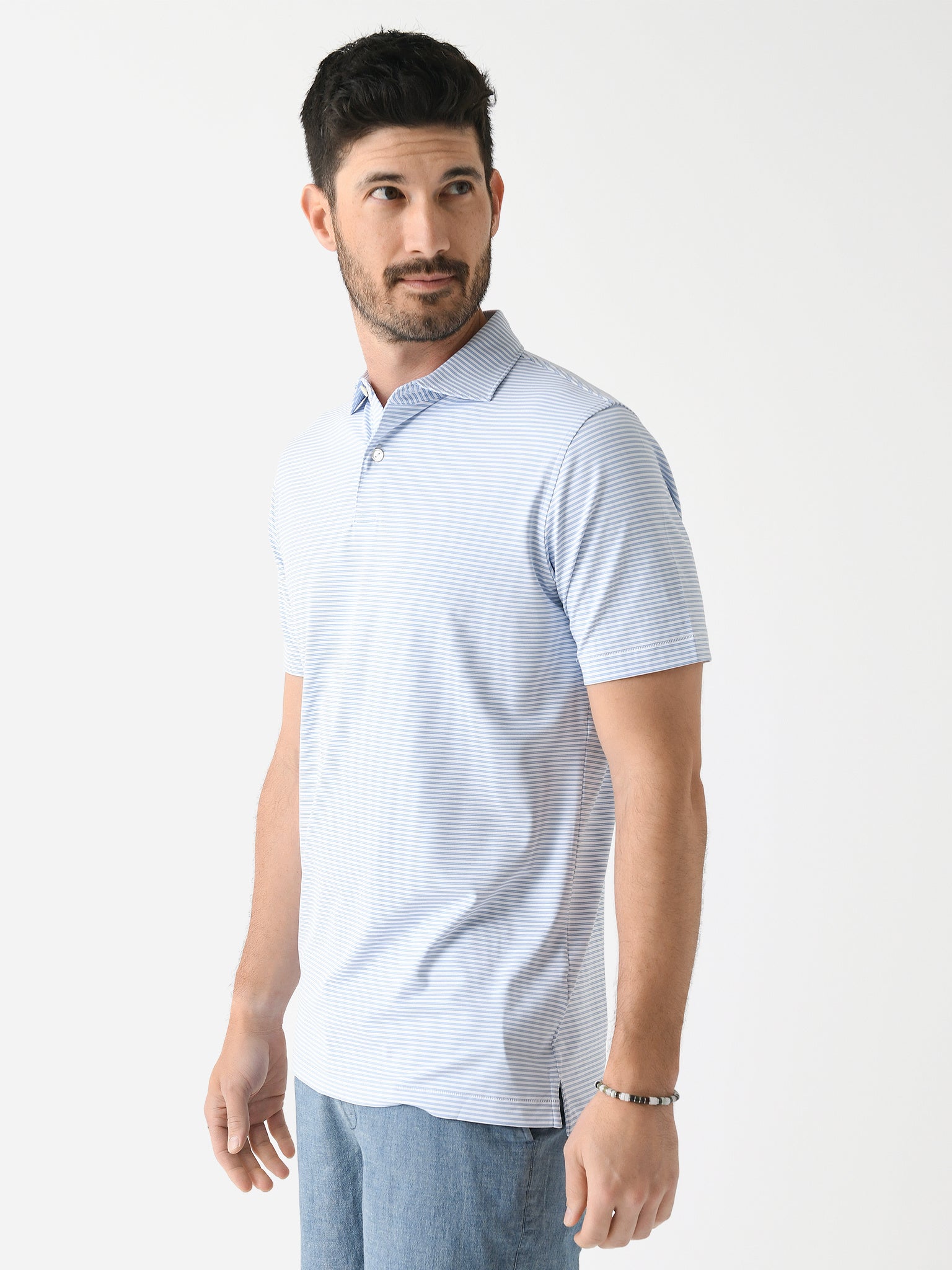 A sweat-wicking polo made from silky-soft performance fabric with an Edwin spread collar and two-button placket.