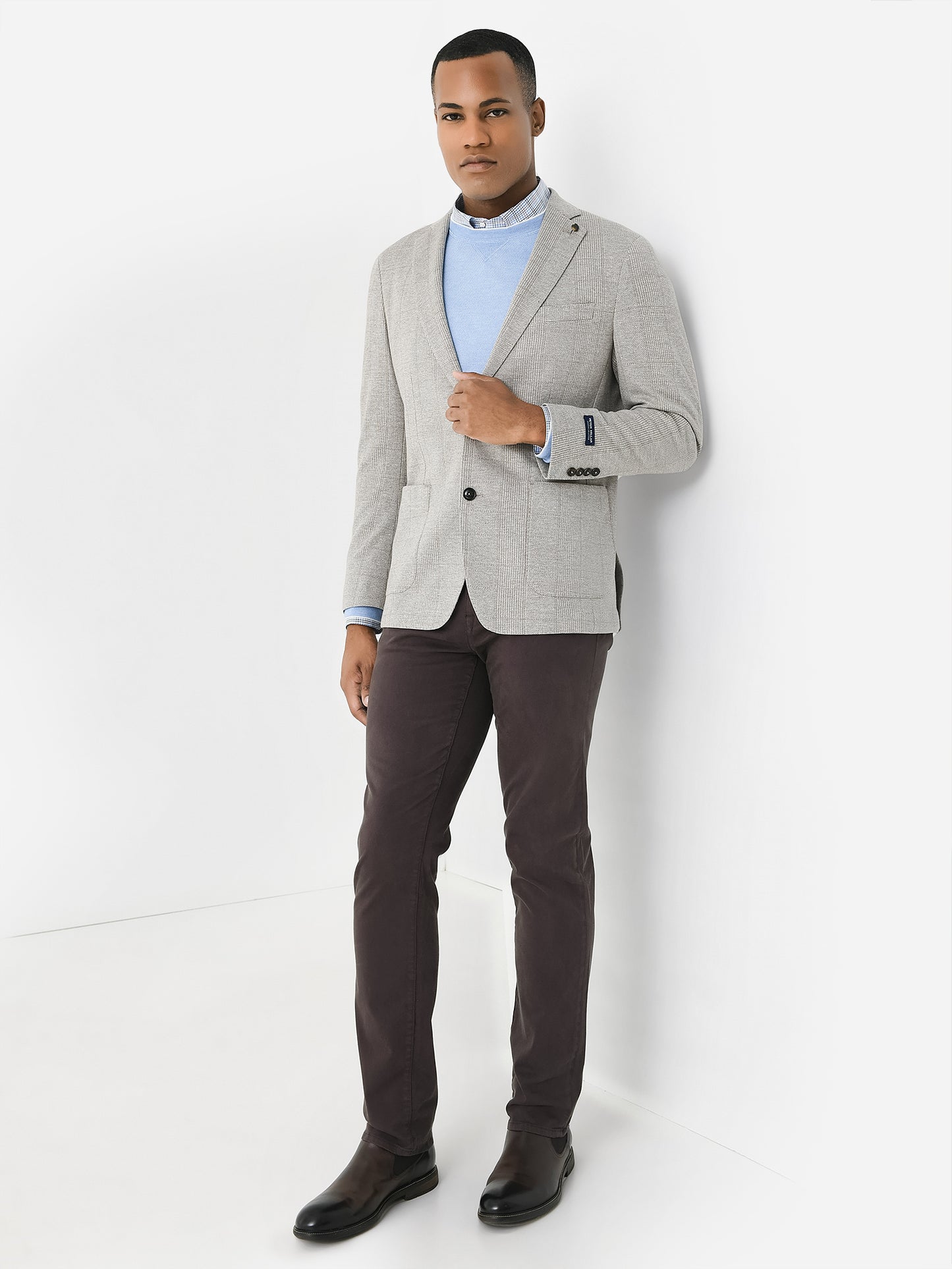 - Model is wearing size 42 jacket.