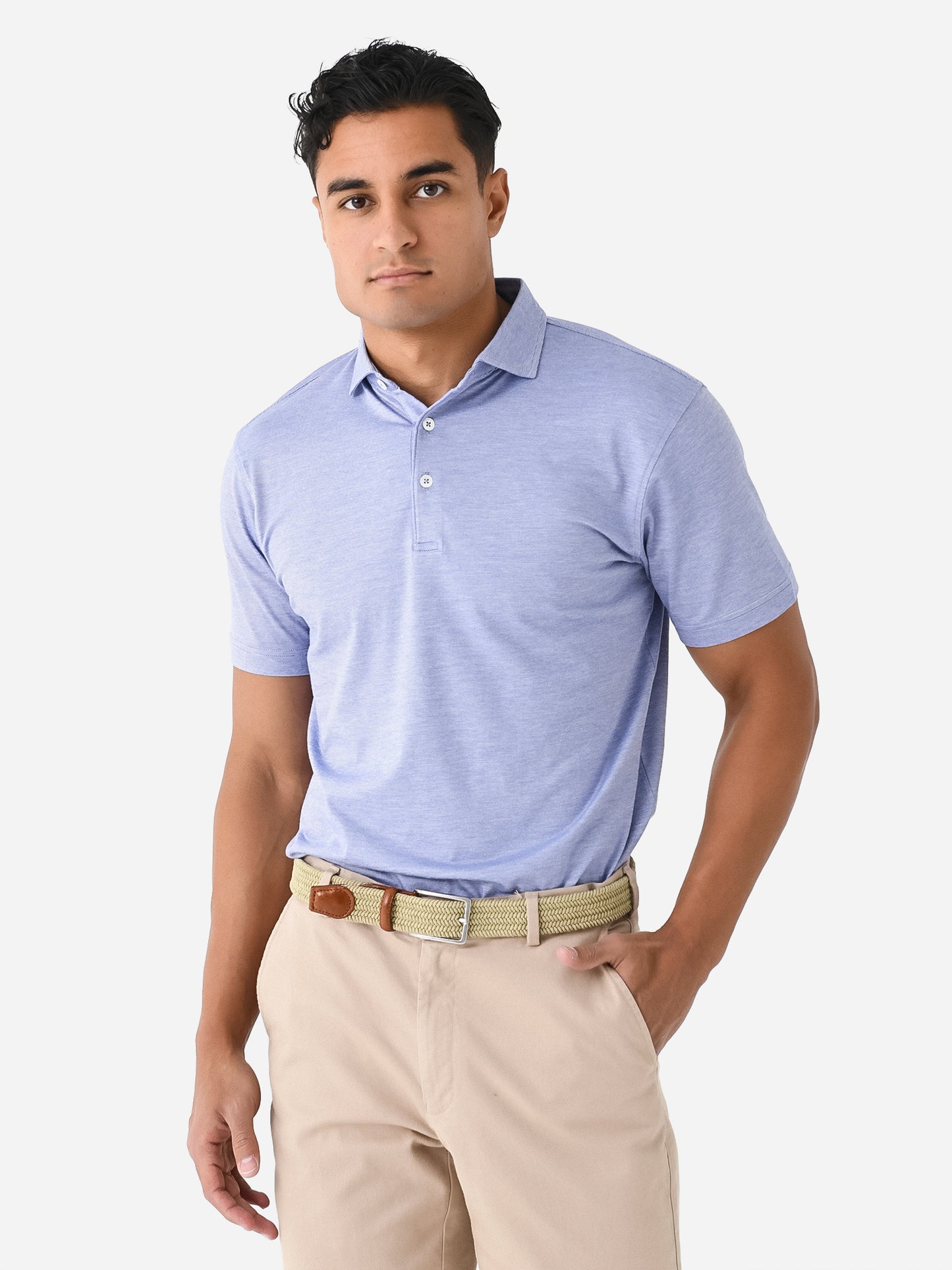 Ultra-soft three-button polo with a heathered design.