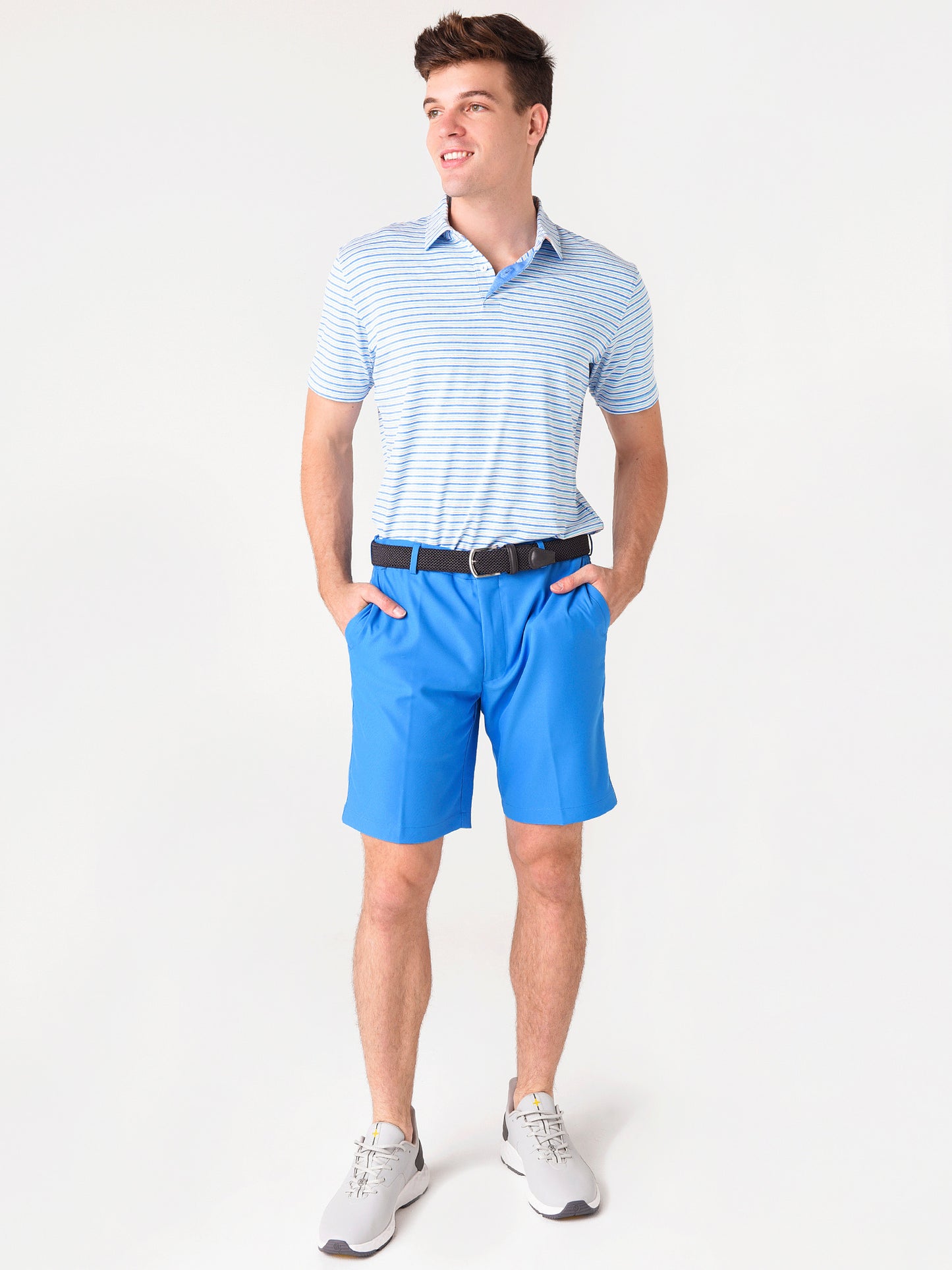 This polo is crafted to deliver enduring comfort in a sleek style that seamlessly transitions off course. It's constructed from an easy-care performance fabric that features moisture-wicking, four-way stretch and odor resistance.FEATURES: