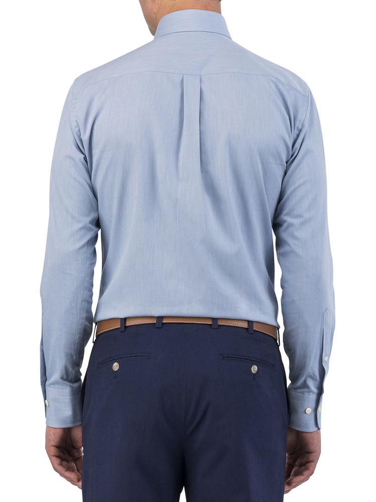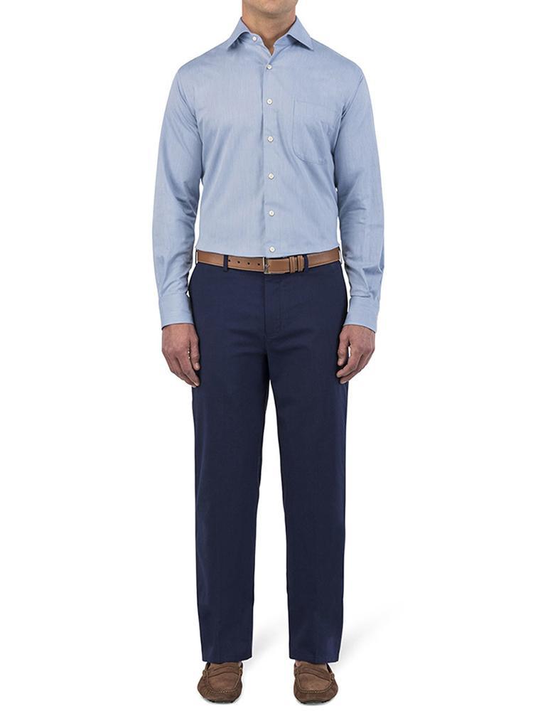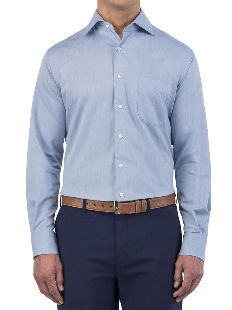 - Spread collar with removable stays, French-front placket, elongated tail