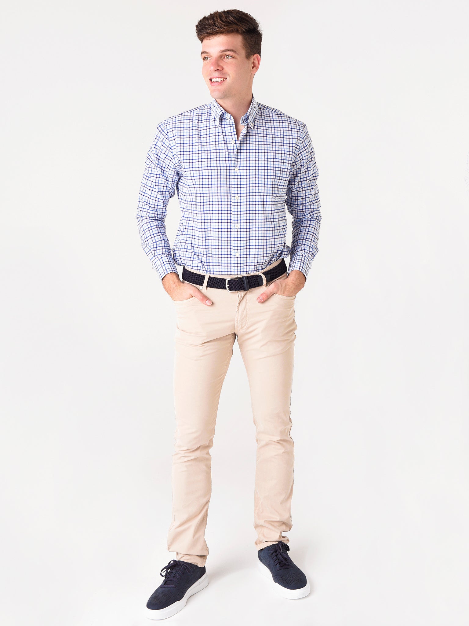 This sport shirt is made from a soft, breathable cotton blend that offers shape-retention and wrinkle-resilience, making it ideal for everyday wear. The addition of performance yarn brings two-way stretch for optimal mobility.