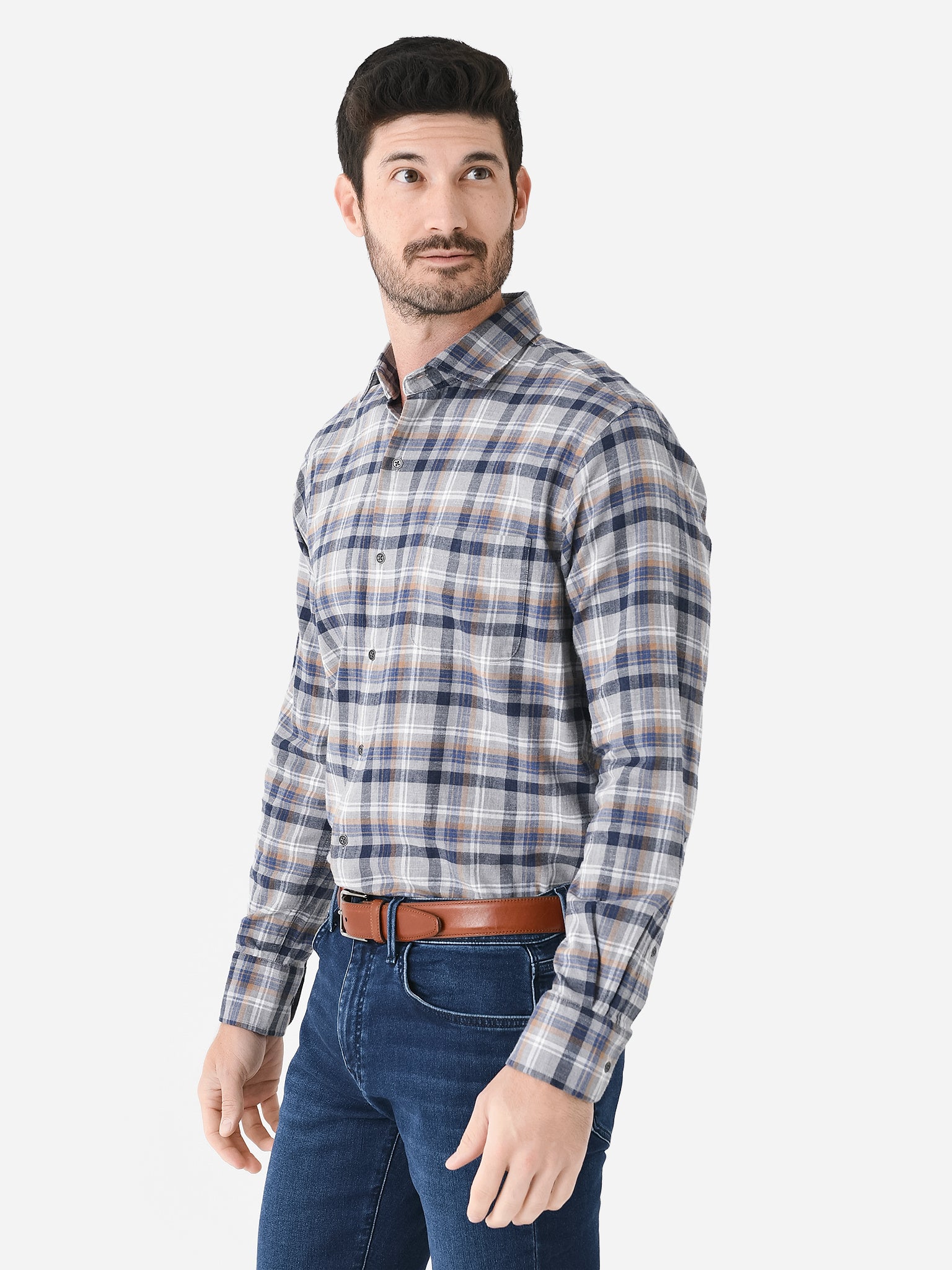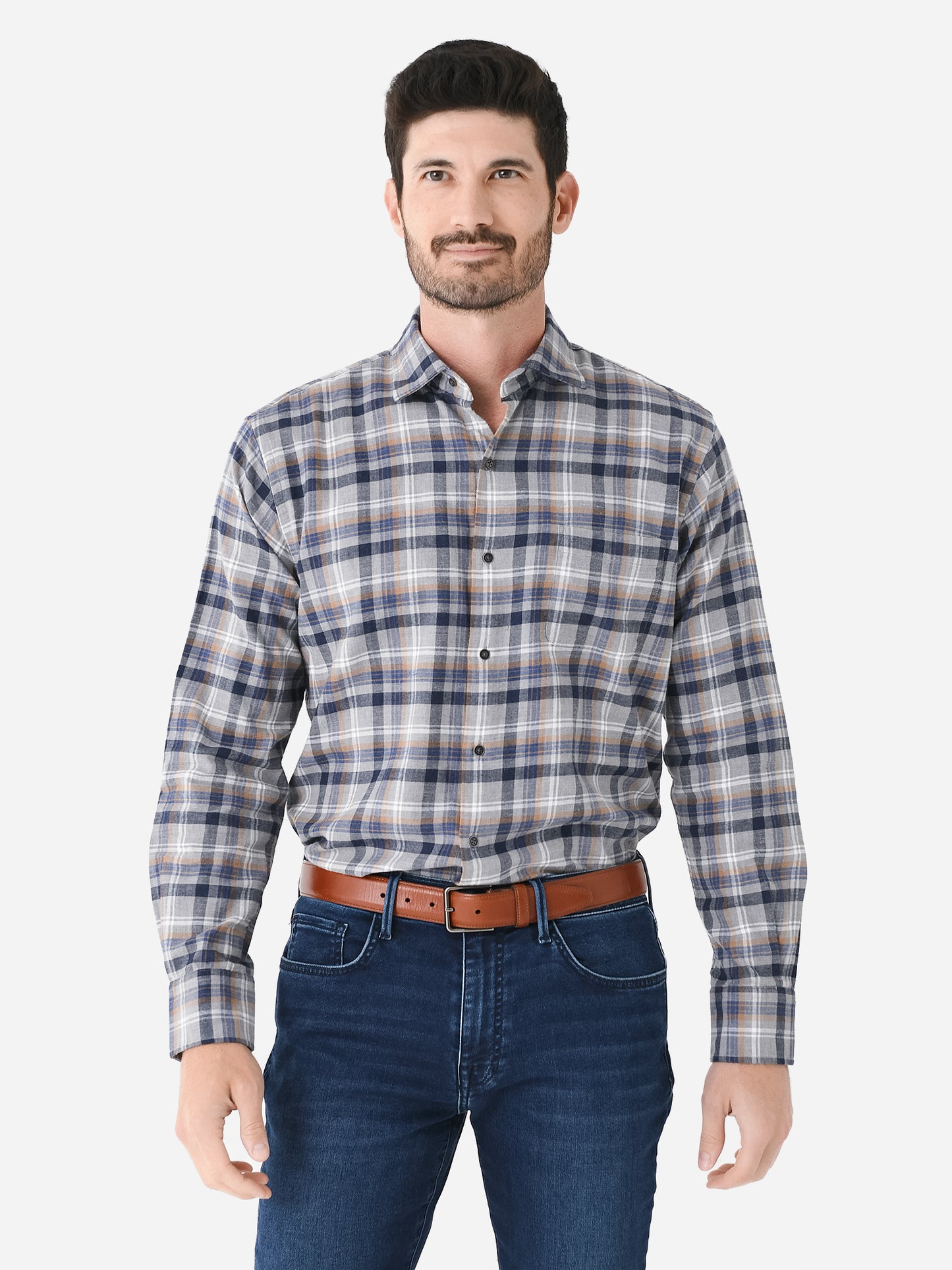Casual sport shirt with a plaid print made from ultra-soft cotton.