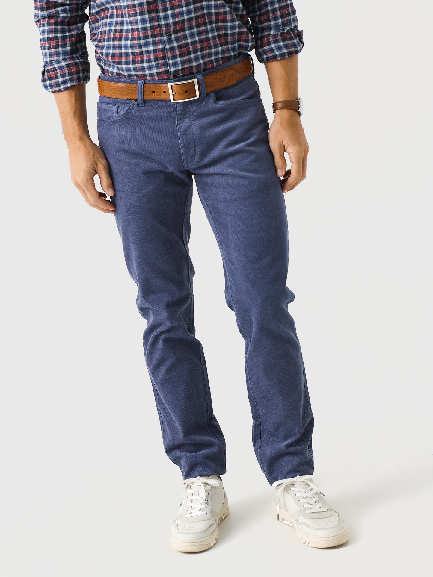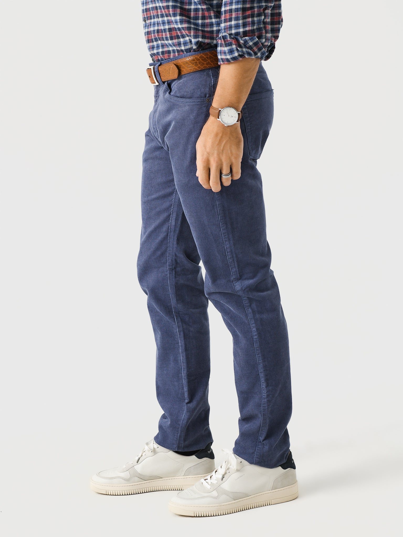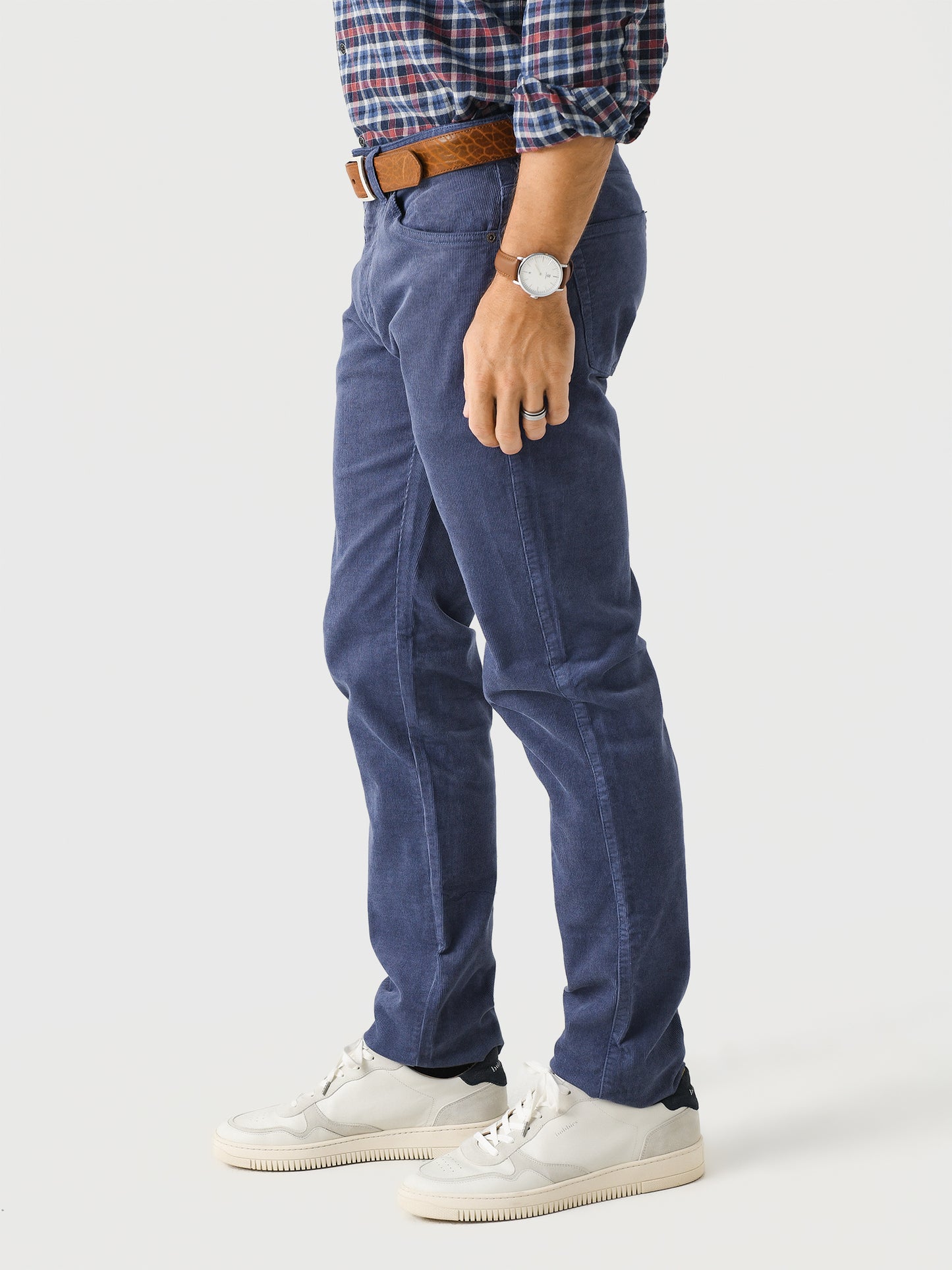 A casual five-pocket pant made from lightweight, thin wale corduroy fabric.