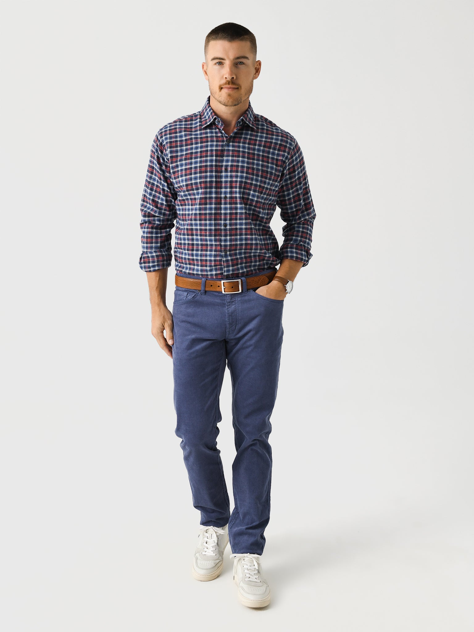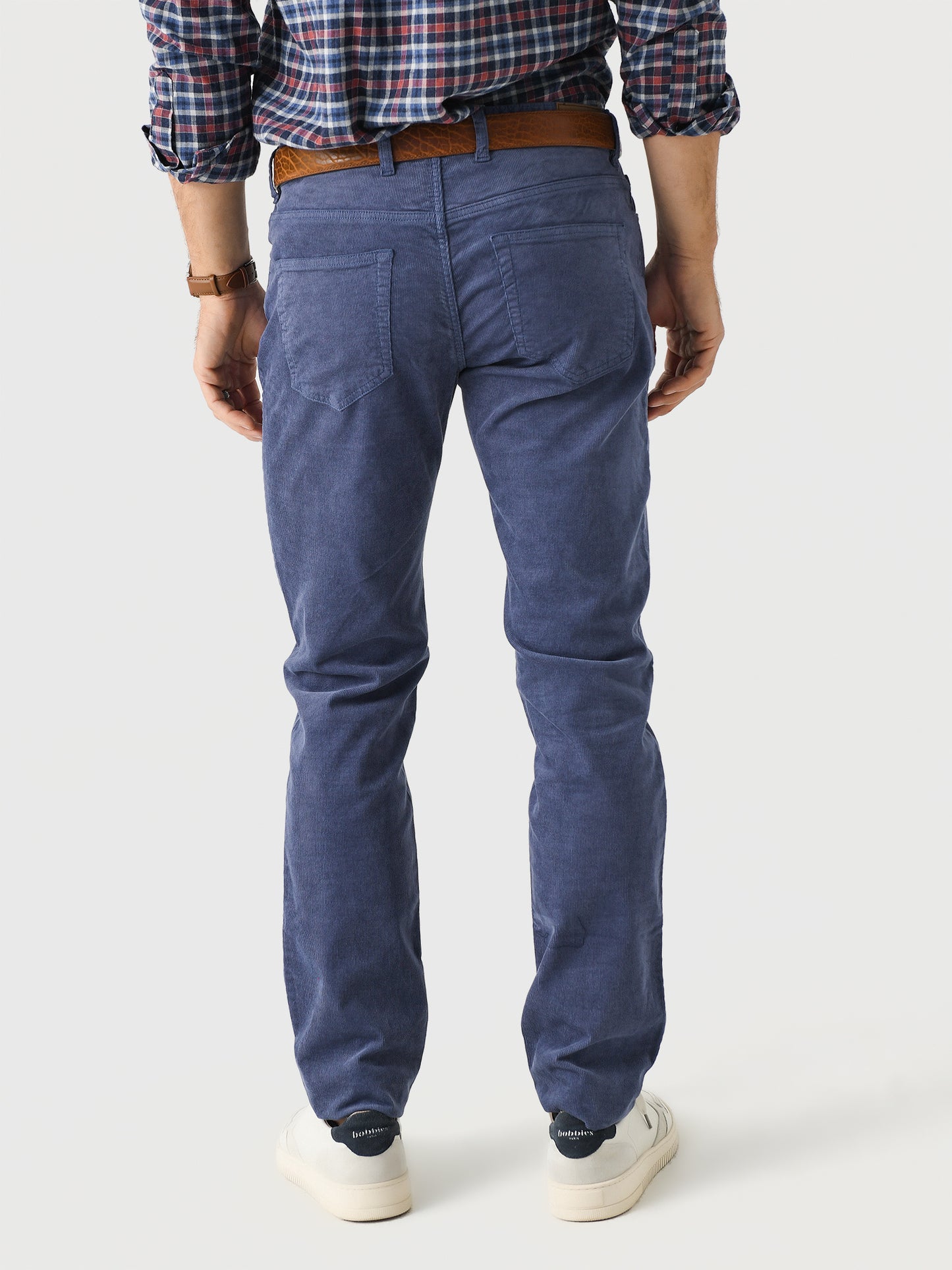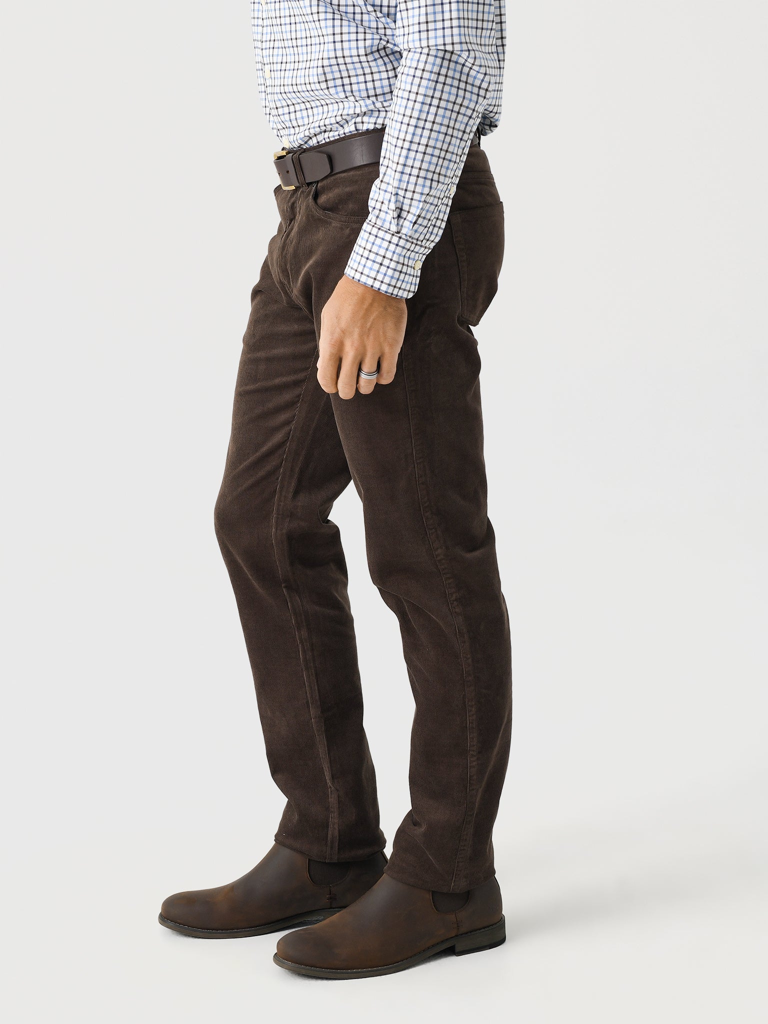 A casual five-pocket pant made from lightweight, thin wale corduroy fabric.