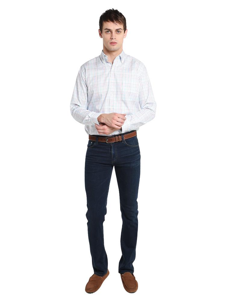 - Styled with Citizens Jeans Style # 6034-989 and Peter Millar Shoe Style # MF17F05. Model is wearing size medium shirt and 32 jean.
