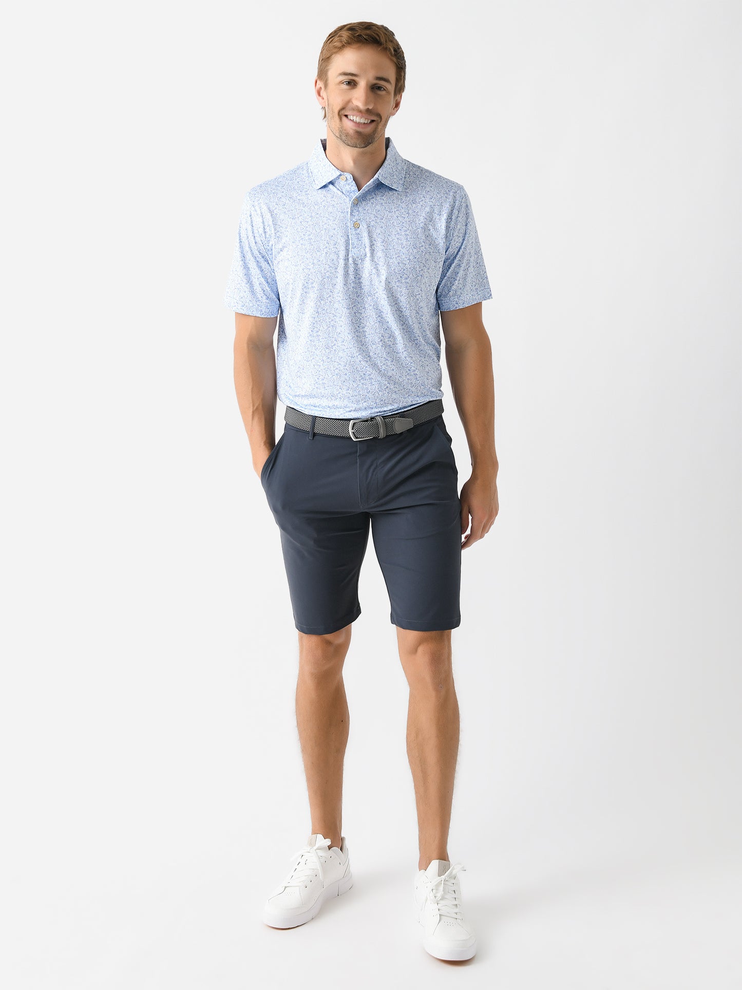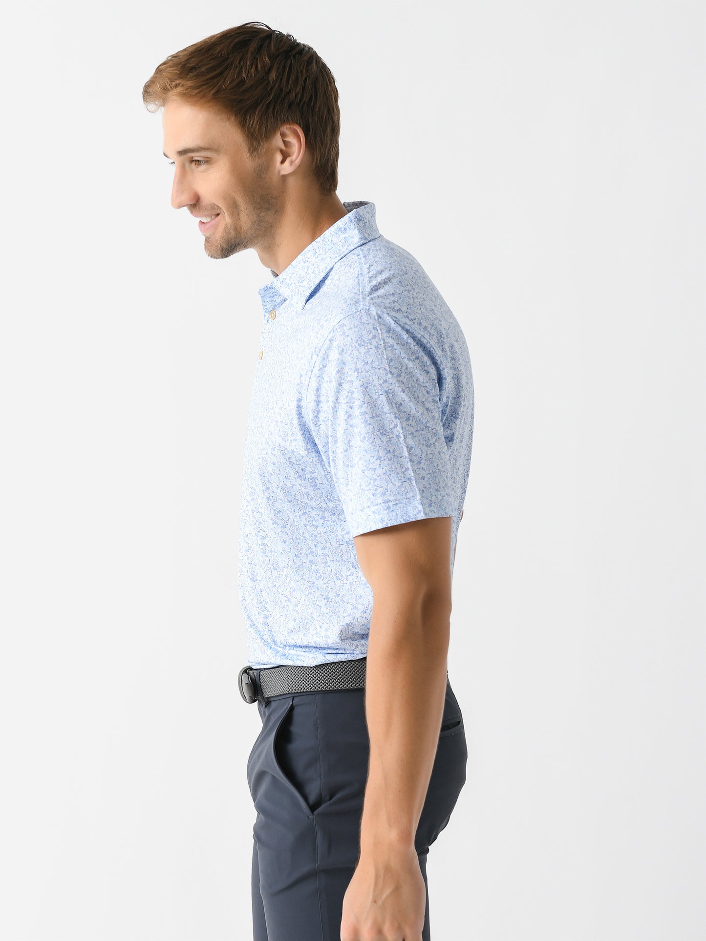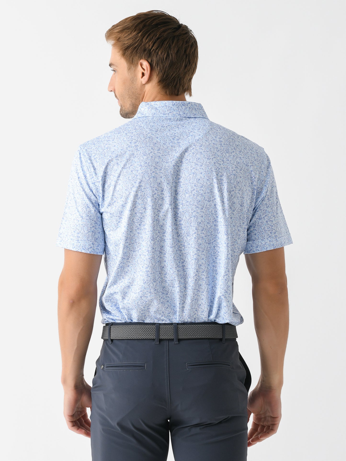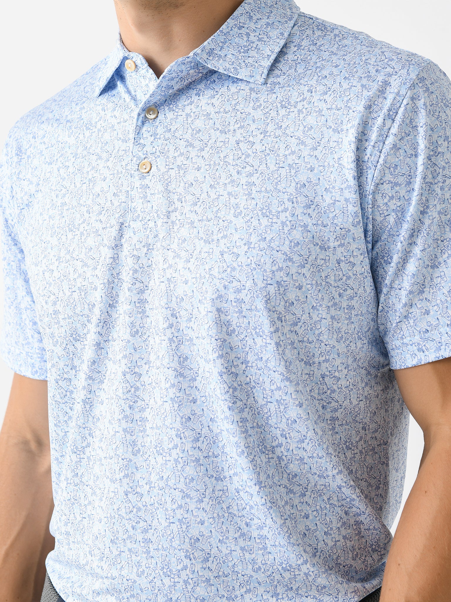 A soft, anti-odor performance polo with sun protection technology and Peter Millar's custom Dazed and Transfused print.